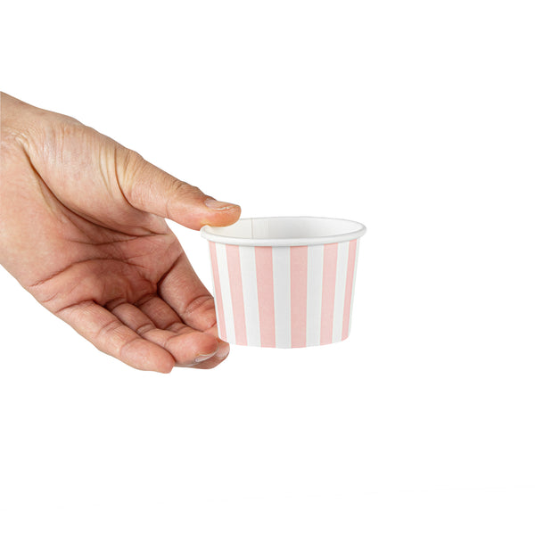 4 OZ ROUND PINK AND WHITE STRIPE PAPER TO GO CUP