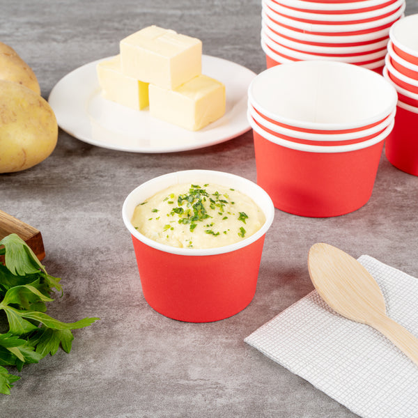 With a PE lining, these ice cream cups can hold oily or greasy substances, minimizing the chances of mess and offer a comfortable experience for enjoying your favorite frozen treats. No more sticky residue on your hands!