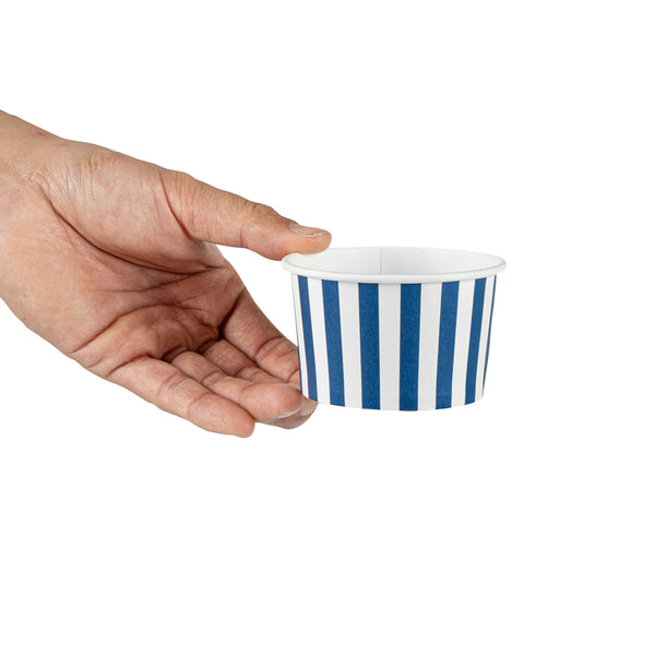 5 OZ ROUND BLUE AND WHITE STRIPE PAPER TO GO CUP