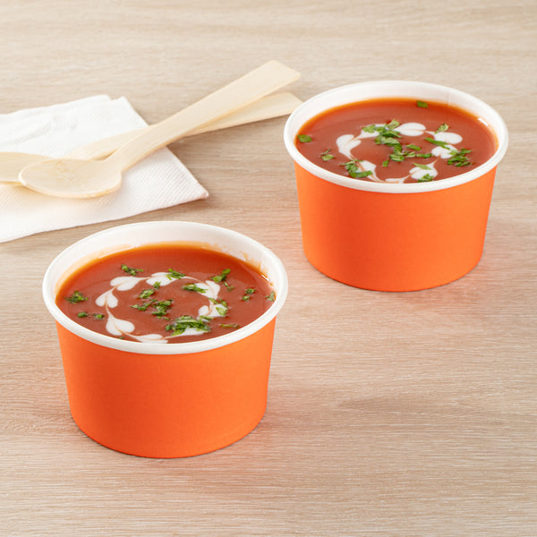 Great for serving hot or cold dishes! Crafted from thick paper, these dessert cups are durable and ideal for serving ice cream at a birthday party or warm chili at a cookoff.