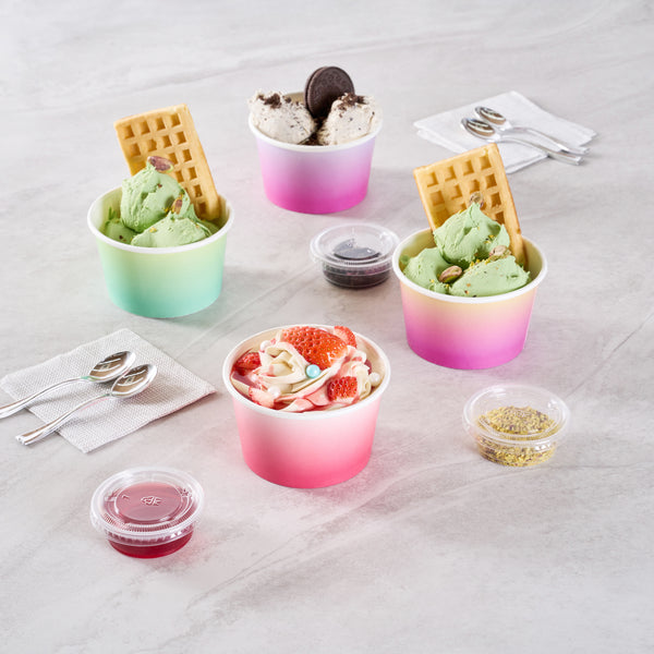 Enhance your food service versatility with leak-resistant containers. The Coppetta Leak-Resistant Paper Cup combines robust paper construction with a waterproof coating, ensuring that liquids are securely contained to avoid messy spills. This 8 oz paper cup is cold food friendly and freezer-safe, making it perfect for serving frozen desserts like ice cream and frozen yogurt. Simultaneously, its hot food-friendly design allows these disposable paper cups to be used for serving soups, hot snacks, and macaroni, providing a multifunctional solution for your menu offerings. At 3.82 inches in length and width, with a height of 2.28 inches, these cups are ideal for various food items. The grease-resistant coating prevents unsightly stains, maintaining a pristine appearance for both hot and cold dishes. Choose these soup paper cups to enhance your service efficiency and customer satisfaction. Each order includes 200 Coppetta Leak-Resistant Paper Cups.