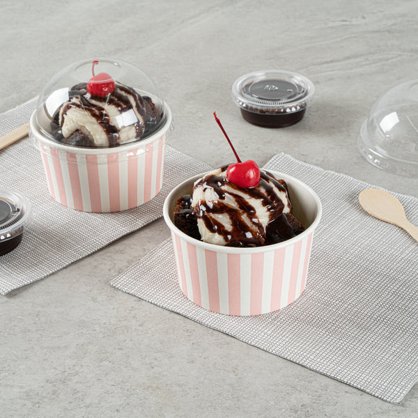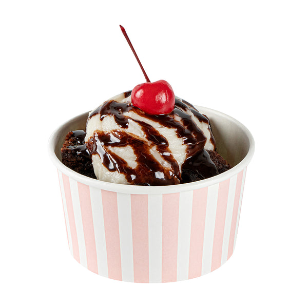 Great for serving hot or cold dishes! Crafted from thick paper, these dessert cups are durable and ideal for serving ice cream at a birthday party or warm chili at a cookoff.