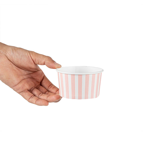 8 OZ ROUND PINK AND WHITE STRIPE PAPER TO GO CUP