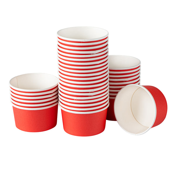 Great for serving hot or cold dishes! Crafted from thick paper, these dessert cups are durable and ideal for serving ice cream at a birthday party or warm chili at a cookoff.