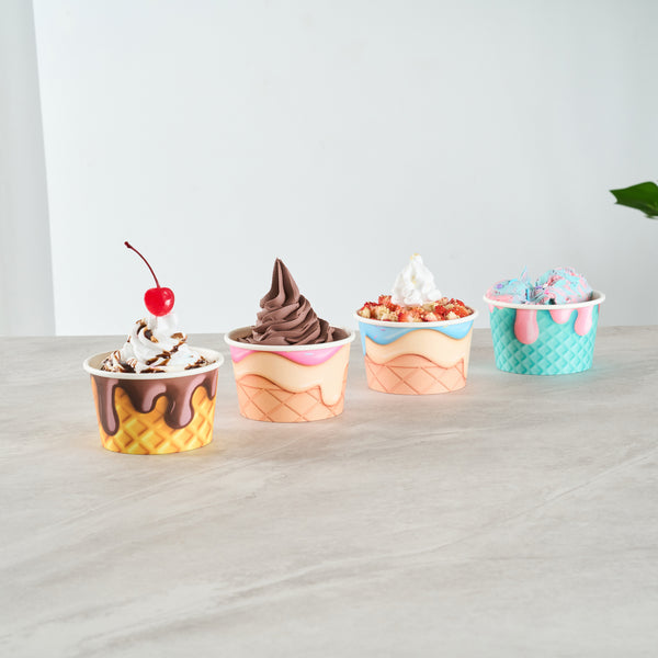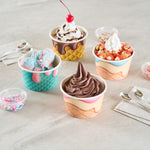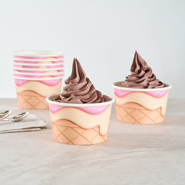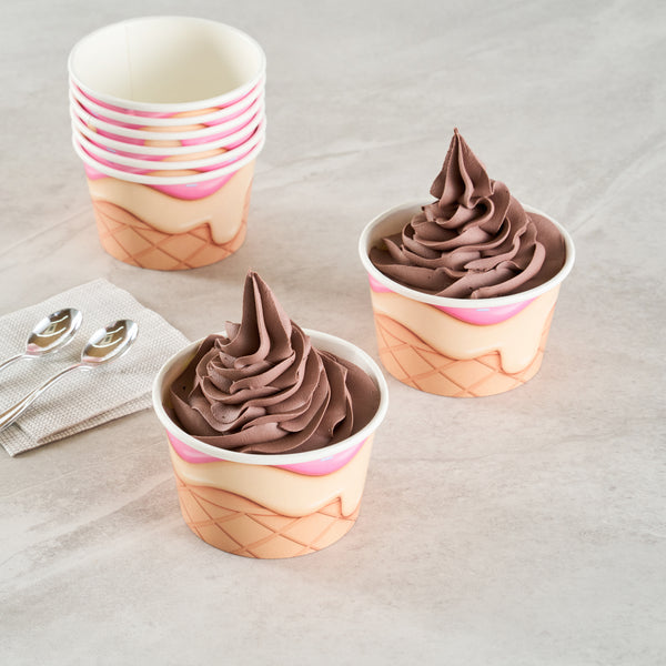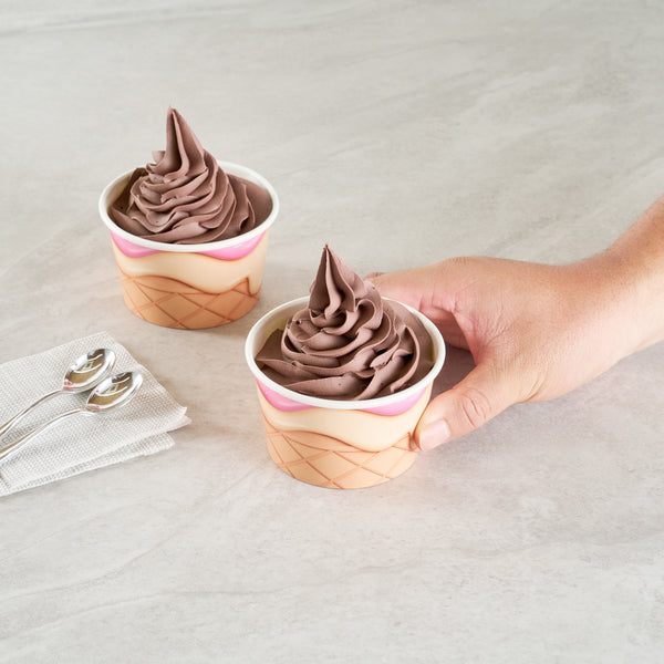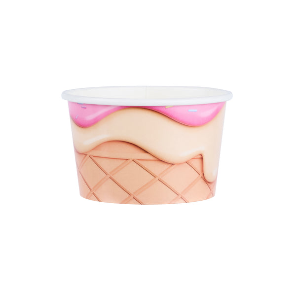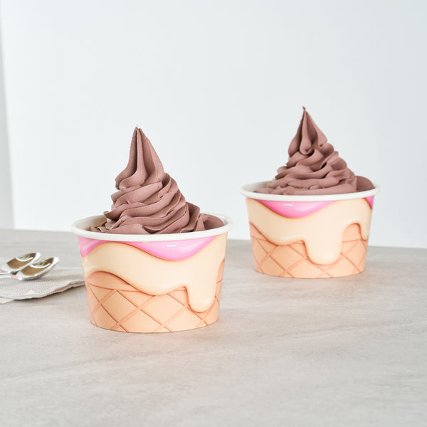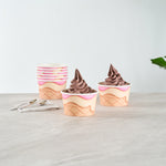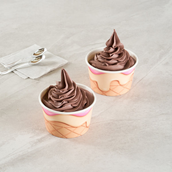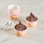 Enhance your dessert presentation with leak-resistant solutions. Coppetta Leak-Resistant Paper Ice Cream Cup features a captivating vanilla and strawberry swirl design that elevates the visual appeal of your desserts, enticing customers to indulge. With its double-coated construction, this paper ice cream cup ensures reliable containment, preventing leaks and spills for a mess-free experience. Its grease-resistant surface maintains a clean and appetizing presentation. Offering an 8-ounce capacity, this frozen yogurt cup is ideal for serving standard dessert portions, ensuring customer satisfaction with each scoop. Crafted from durable paper, it is freezer-safe and supports both cold treats and hot meals, providing versatility in menu offerings. Simplify cleanup and reduce labor costs with its easy-to-dispose design. Elevate your dessert service today with this indispensable disposable ice cream bowl. Each order includes 200 Coppetta Leak-Resistant Paper Ice Cream Cups.