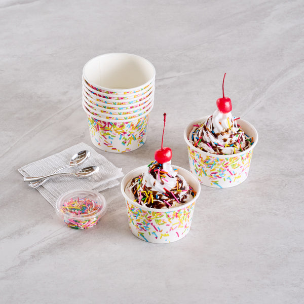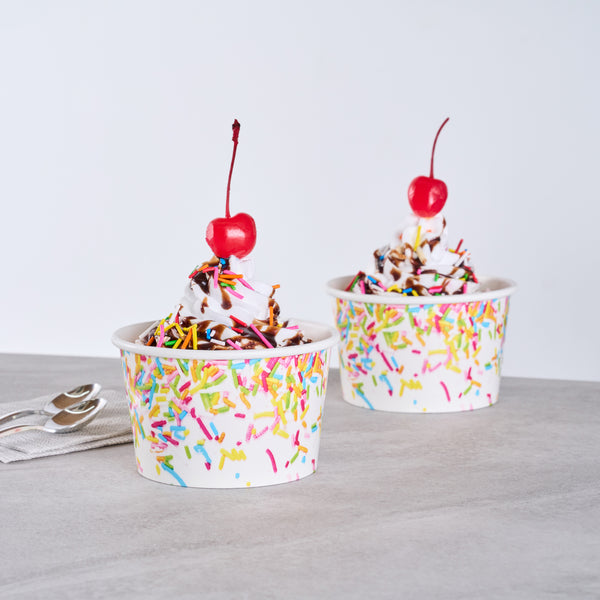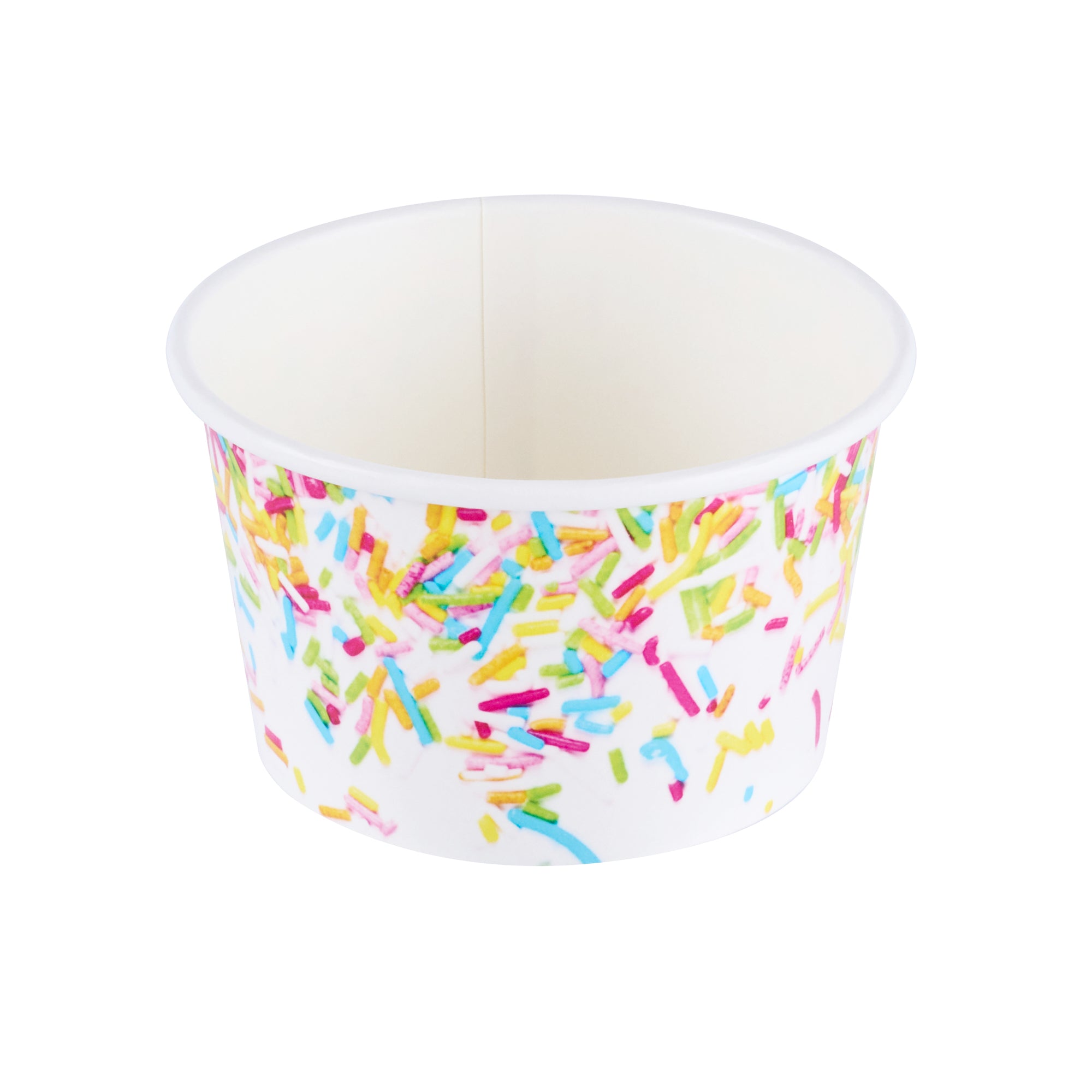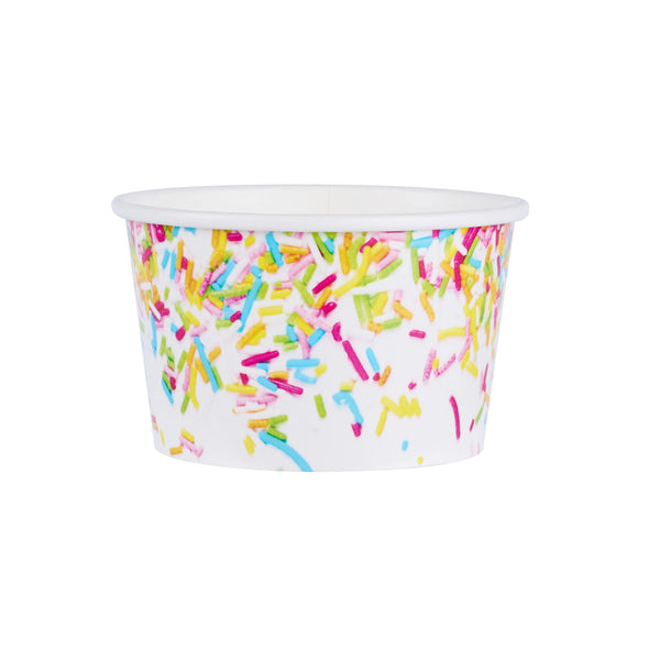 8 OZ ROUND WHITE PAPER TO GO CUP - WITH PARTY SPRINKLES