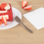 Offer a stylish solution for your bite-sized confectionary presentation with our Coppetta Fashion Gray Plastic Petal Spoons. Crafted from high-quality plastic, these frozen yogurt spoons boast exceptional durability, avoiding them from bending or breaking with ease. The robust and sturdy handles of these disposable spoons facilitate effortless scooping of tightly packed gelato or towering servings of icy sorbet. These dessert spoons have a distinctive angled design that ensures your customers can savor every delectable bite effortlessly. Adorned with a subtle gray hue, these cake spoons add a delightful touch to large bowls of hand-scooped ice cream and cups of freshly swirled frozen yogurt. These plastic spoons measure 4.5 inches in length by 1 inch in width, making them ideal for serving alongside all types of frozen treats and delectable desserts. Shipped in a 500 count box.