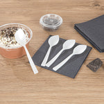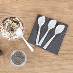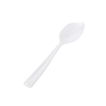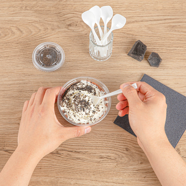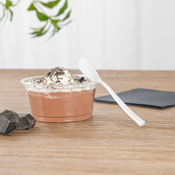Enjoy the perfect combination of style and functionality with our Coppetta Pearl White Plastic Petal Spoons. These frozen yogurt spoons are crafted from high-quality plastic and won't break easily under the weight of hearty bites. Designed with an angled shovel-like shape, these disposable spoons are the ideal utensil for scooping up delicious bites of creamy chocolate ice cream and tangy swirls of fro-yo. The strong and sturdy handles of these cake spoons make it easy to dig into tightly packed scoops of gelato and towering desserts. Featuring a sleek white finish, these plastic spoons elevate the overall allure of the dessert presentation. These petal spoons are disposable to streamline your cleaning process. Each dessert spoon measures 4.5 inches in length by 1 inch in width, making them ideal for serving alongside all types of frozen treats and delectable desserts. Shipped in a 500 count box.