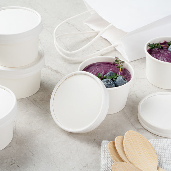 Made from premium paper, these to go soup container lids are disposable for an easy cleanup after your parties. No more hand washing lids!