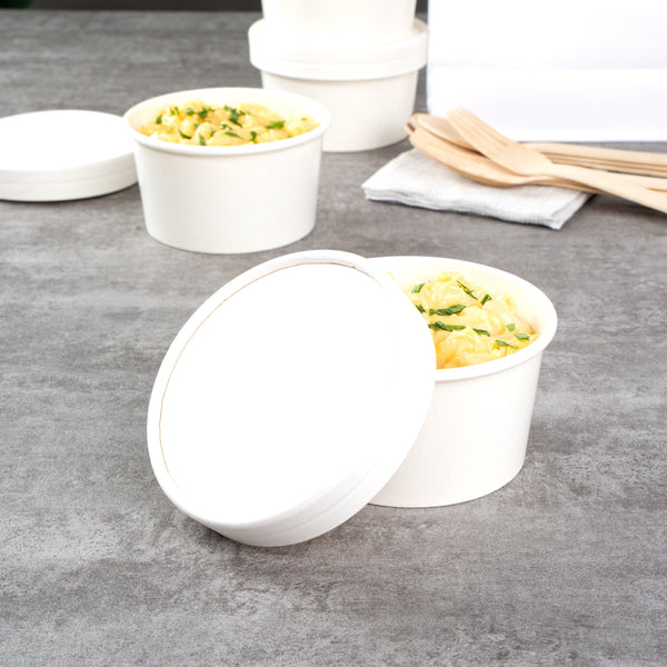 Made from premium paper, these to go soup container lids are disposable for an easy cleanup after your parties. No more hand washing lids!