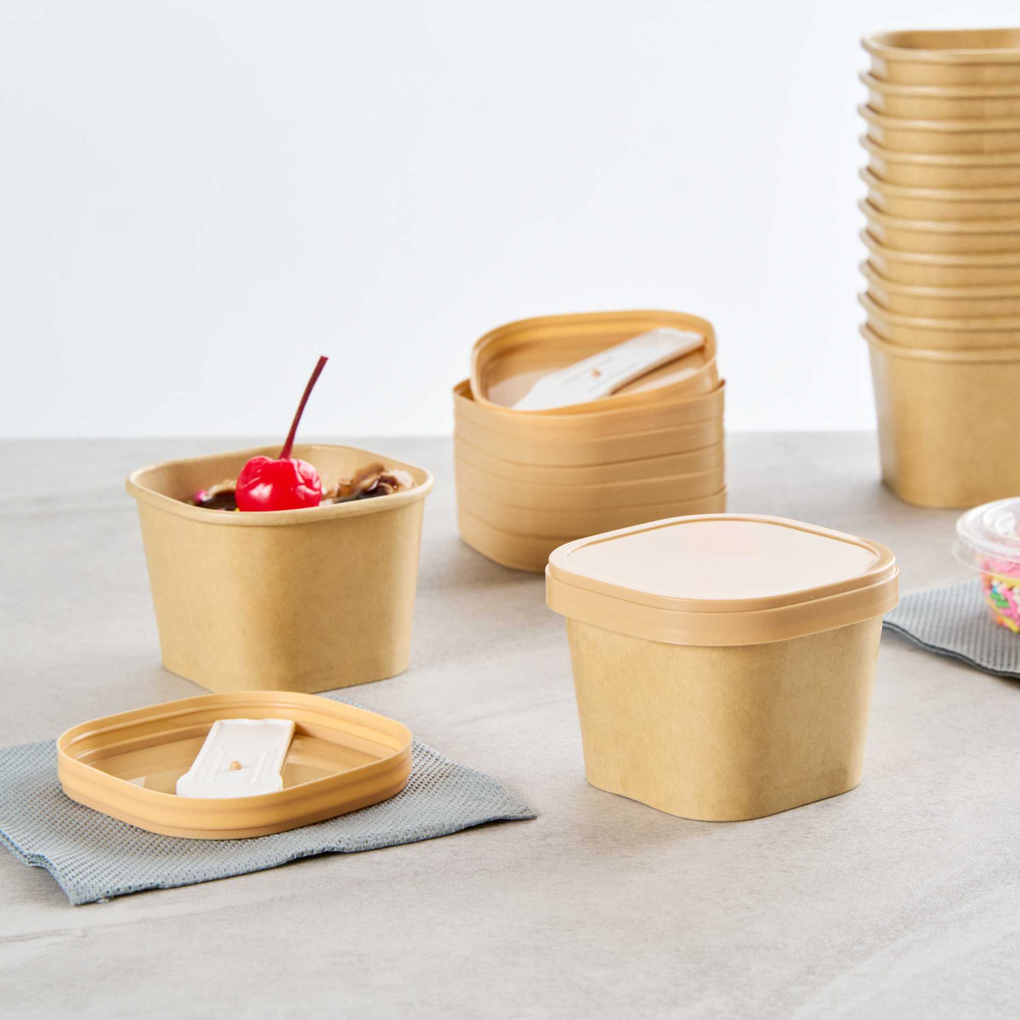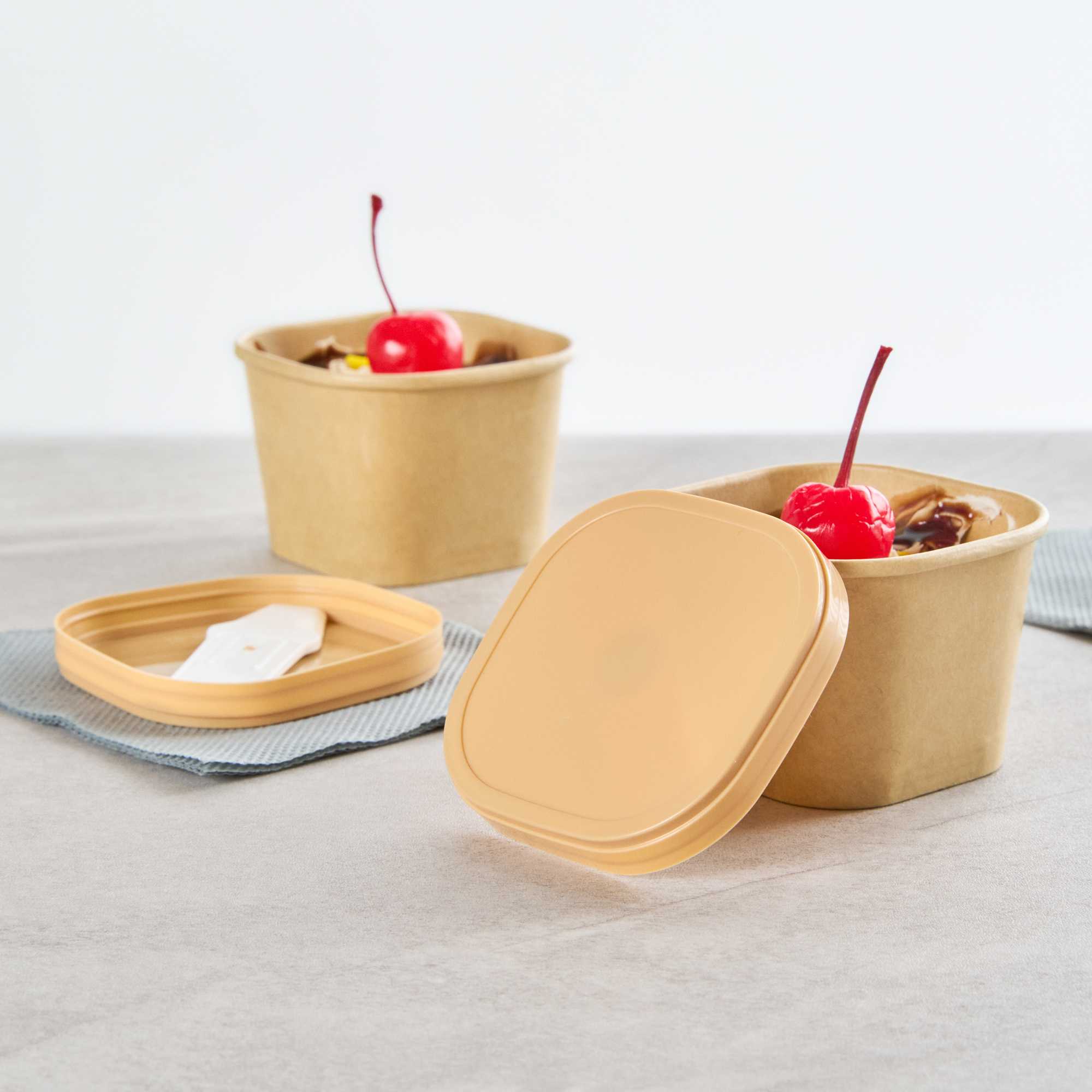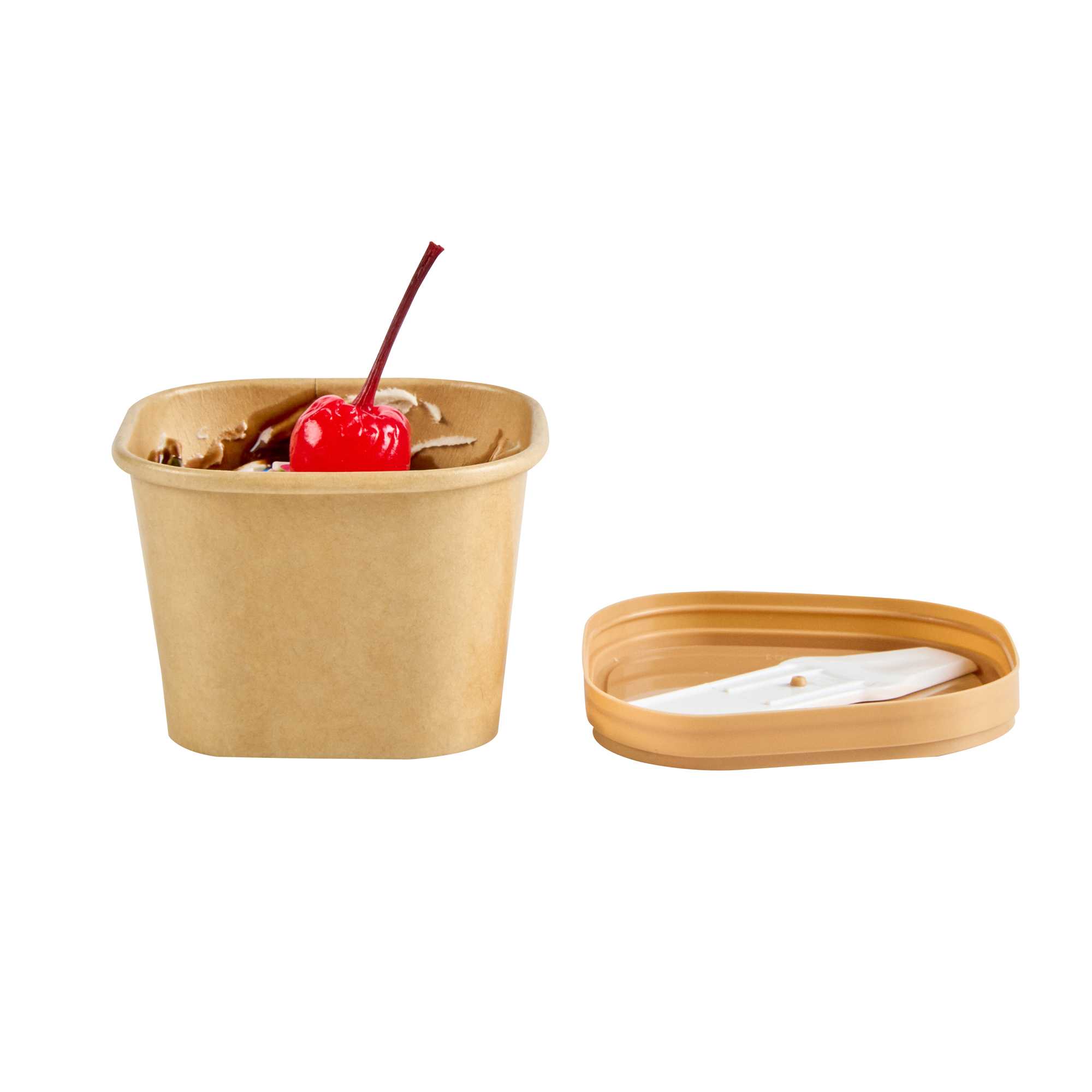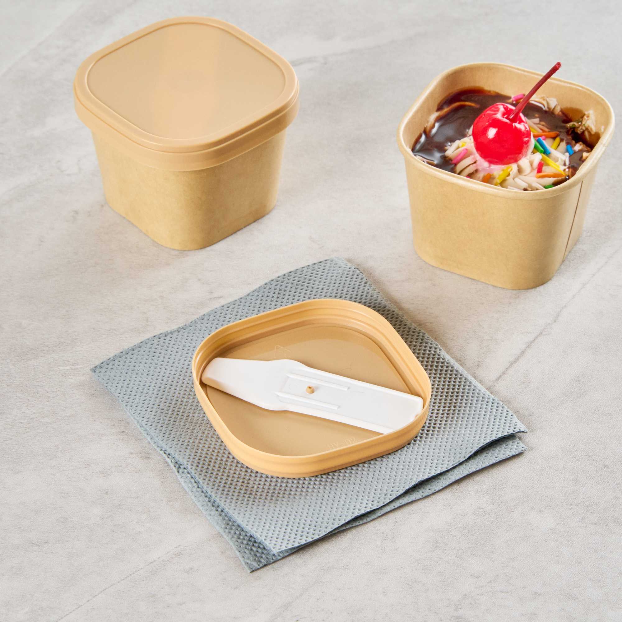 Enhance your foodservice presentation with our Coppetta Square Brown Plastic Lids. These durable plastic lids ensure reliable use and are recyclable to reduce environmental impact, making them a sustainable choice for your restaurants. Coordinate these ice cream cup lids with our 3-ounce Coppetta cups to securely hold your ice creams and treats. Perfect for to-go orders, these disposable lids include a convenient plastic spoon for enjoying treats on the go. With a versatile design, these lids are suitable for both hot and cold treats, providing flexibility for your menu offerings. The natural brown finish of these plastic lids adds a stylish touch to your take-out packaging. Measuring 2.44 inches in length by 1.77 inches in width by 0.35 inches in height, these brown plastic lids fit securely to prevent spills. Sold in a 50 count box.