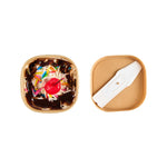 SQUARE BROWN PLASTIC LID - FITS 3 OZ TO GO CUP, WITH SPOON