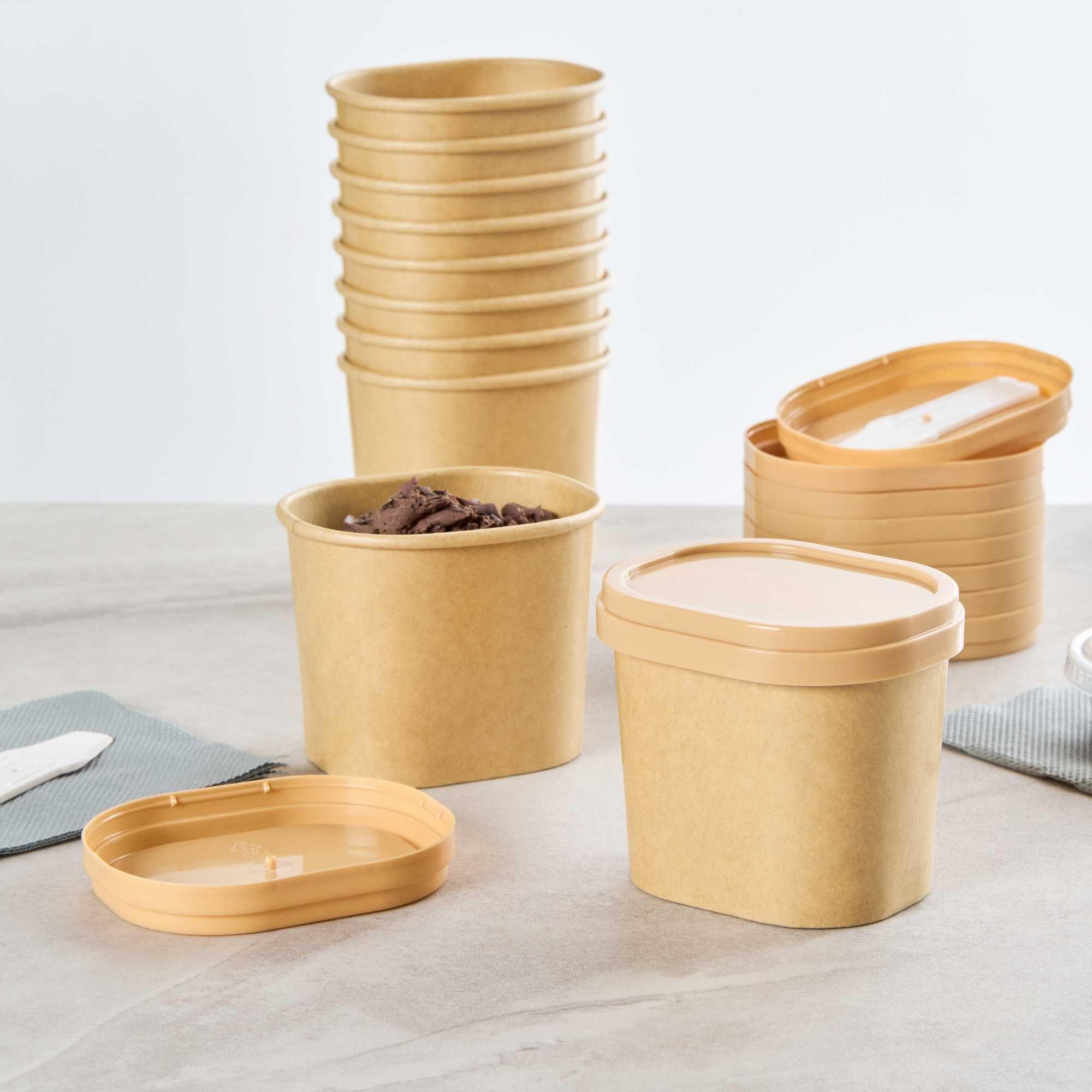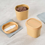Elevate your foodservice presentation with our Coppetta Square Brown Plastic Lids. These durable plastic lids ensure reliable use while being recyclable to reduce environmental impact. Coordinate these ice cream cup lids with our 4-ounce Coppetta cups to securely hold your ice creams and treats. With the included plastic spoon, enjoying your treats on the go is made easy and convenient. The versatile design of these brown plastic lids allows for enjoying both hot and cold treats effortlessly. Adding a natural touch to your takeout packaging, these disposable lids boast a brown finish that enhances visual appeal. Measuring 3.03 inches in length by 2.48 inches in width by 0.47 inches in height, these to go cup lids are perfectly sized for a snug fit. Sold in a 50 count box.