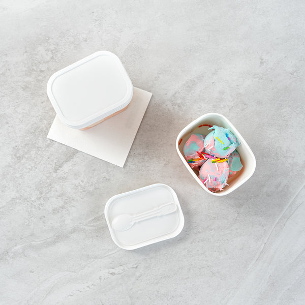 Enhance takeout convenience with an ice cream lid with spoon. Coppetta Integrated Spoon Ice Cream Lid features a durable plastic construction that ensures reliable use and is recyclable, reducing environmental impact while providing a secure fit for 7 and 12 ounce cups. Its integrated spoon simplifies on-the-go treat enjoyment, allowing customers to enjoy their frozen desserts without needing separate utensils. This disposable lid with spoon is cold food friendly, making it ideal for serving ice cream, frozen yogurt, and even chilled salads. Measuring 3.25 inches in both length and width, this white lid provides a clean, professional appearance that enhances product presentation in ice cream parlors and frozen yogurt shops. Caterers can trust this plastic lid for frozen desserts to maintain product integrity, offering a hygienic and convenient solution for individual servings. Each order includes 50 Coppetta Integrated Spoon Ice Cream Lids.