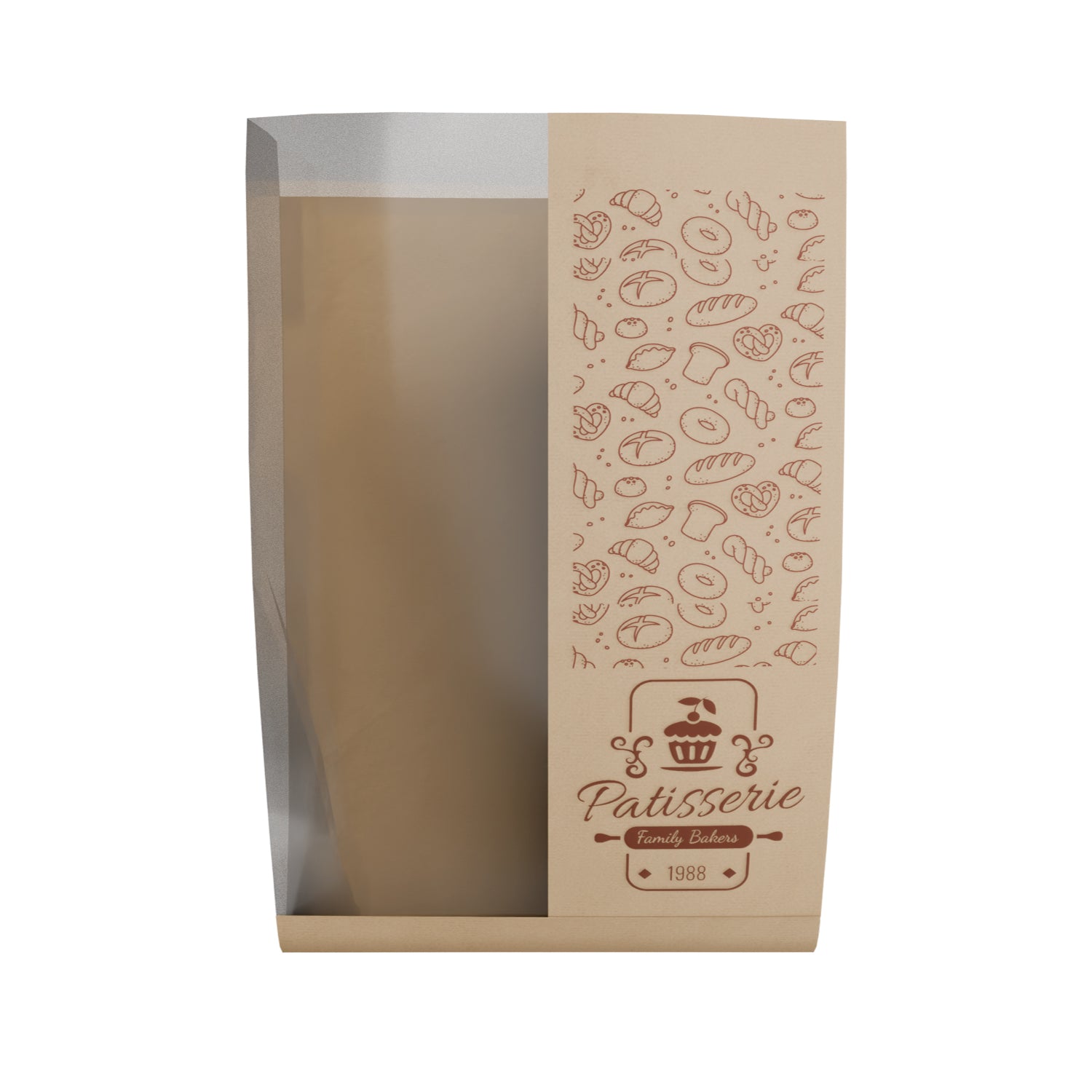 Packaging that protects while promoting—our custom bread bags do both. Designed for artisan loaves, croissants, rolls, and pastries, these custom printed bread bags feature a clear side window that lets customers see freshness while keeping baked goods secure. Made from strong white or kraft paper, these custom bakery bags with windows resist tears and hold their shape, even when filled with multiple items.
