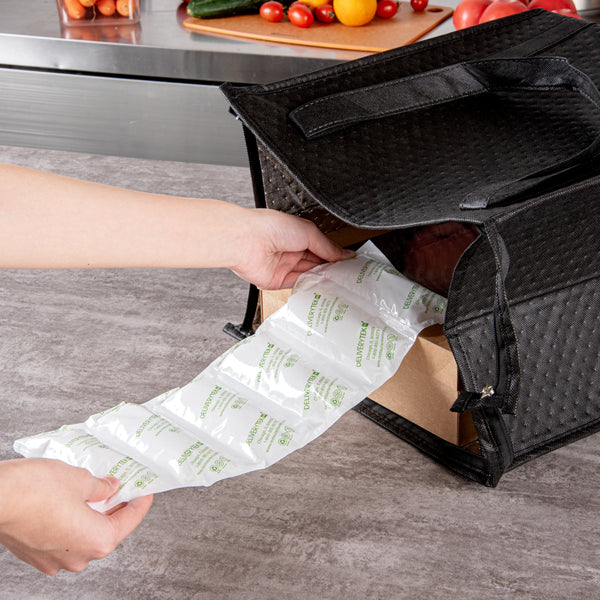 Get a 5-star rating for delivering your frozen items perfectly using our Delivery Tek Plastic Shipping Ice Packs. These sheets of ice packs are made of plastic for high durability and reusability. Use these cool pack cells individually or as a sheet, depending on your purpose. Soak these ice packs for cooler in water and air dry them before storing in the freezer. These freezer pack sheets have non-woven fabric on one side that provides a comfortable touch and fast swelling of the packs. For a smooth delivery process, these dry ice pack sheets are leakproof and do not wet your food. Manufactured as thin sheets, these sheets of ice packs are easy to store in your kitchen or home. Each of these reusable ice pack sheets comes with 6 ice pack cells and measures 15.25 inches in length by 5.75 inches in width. Shipped in a 10 count box.
