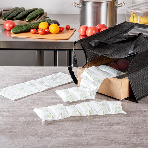Get a 5-star rating for delivering your frozen items perfectly using our Delivery Tek Plastic Shipping Ice Packs. These sheets of ice packs are made of plastic for high durability and reusability. Use these cool pack cells individually or as a sheet, depending on your purpose. Soak these ice packs for cooler in water and let them air dry before storing them in the freezer. These freezer pack sheets have non-woven fabric on one side that provides a comfortable touch and fast swelling of the packs. For a smooth delivery process, these dry ice pack sheets are leakproof and do not wet your food. Manufactured as thin sheets, these sheets of ice packs are easy to store in your kitchen or home. Each of these reusable ice pack sheets comes with 6 ice pack cells and measures 15.25 inches in length by 5.75 inches in width. Shipped in a 100 count box.