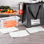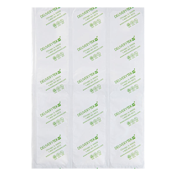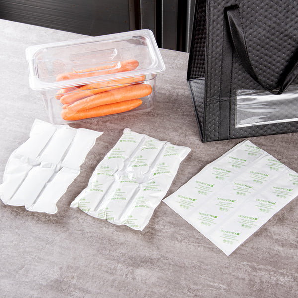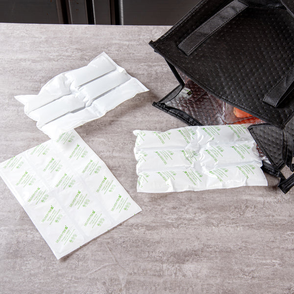 Deliver your frozen pizzas the best way using our Delivery Tek Plastic Shipping Ice Packs. These sheets of ice packs are made of plastic and do not tear or get damaged even after multiple uses. Utilize these ice blankets as a whole or as individual cells based on your needs. Before placing these dry ice pack sheets inside the freezer, soak them in water and towel dry them. For faster water absorption, these sheets of shipping ice packs have a soft fabric on one side. These cold pack sheets do not dampen your package box during transportation as they are leakproof. Easy to stack and store, these dry ice pack sheets come as thin sheets that can be stored and reused. Each of these reusable ice pack sheets comes with 6 ice pack cells and measures 11.5 inches by 7.75 inches in width. Sold in a 100 count box.