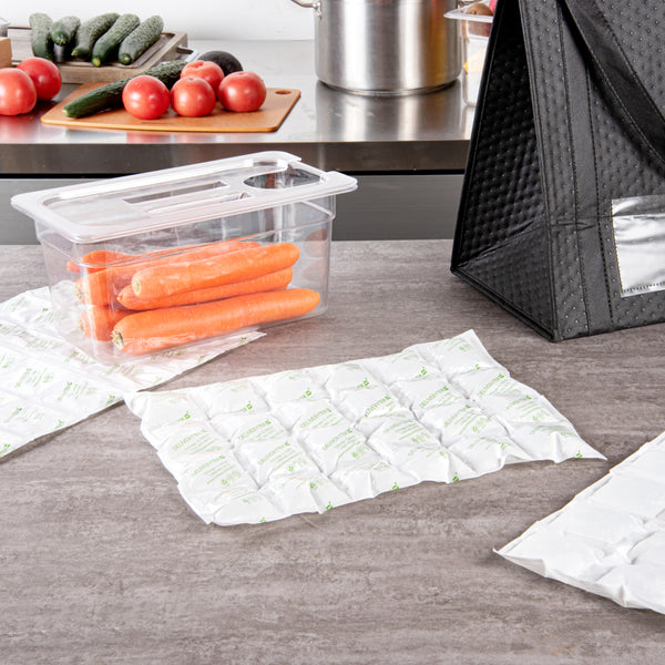 Deliver your cakes fresh using our Delivery Tek Plastic Shipping Ice Packs. Made from durable plastic, these sheets of ice packs do not tear or get damaged during transit. Immerse these ice packs for coolers in water and dry them before placing them in the freezer. Use these sheets of cool packs as a whole or as individual cells. The fabric side of these freezer packs allows faster absorption. For a smooth delivery process, these sheets of dry ice packs are leakproof. These cold packs come in thin sheets to enable easy storage in your kitchen or catering vans. Measuring 15.25 inches in length by 11.5 inches in width, each ice pack sheet contains 24 cells of dry ice packs. Sold in a 100 count box.