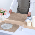 Enhance your dining experience with sophisticated tablescapes. Our Denim Mesh Linen-Feel Placemats boast a refined linen-feel design, instantly elevating any dining setting with a touch of elegance. These vinyl placemats are expertly crafted with an edge-wrapping process that prevents fraying and maintains their shape over time, ensuring long-lasting durability in a bustling restaurant setting. Made from premium vinyl, these plastic placemats are grease-proof, hot food friendly, and allow for effortless cleaning with just a damp cloth, making them an ideal choice for high-turnover foodservice establishments. Measuring 17.7 inches in length and 11.8 inches in width, these dining table mats provide ample coverage for plates and cutlery, while their beige color complements a wide range of decor styles. Invest in these mats to enhance your tabletop presentation and streamline clean-up. Each order includes 6 Denim Mesh Linen-Feel Placemats.