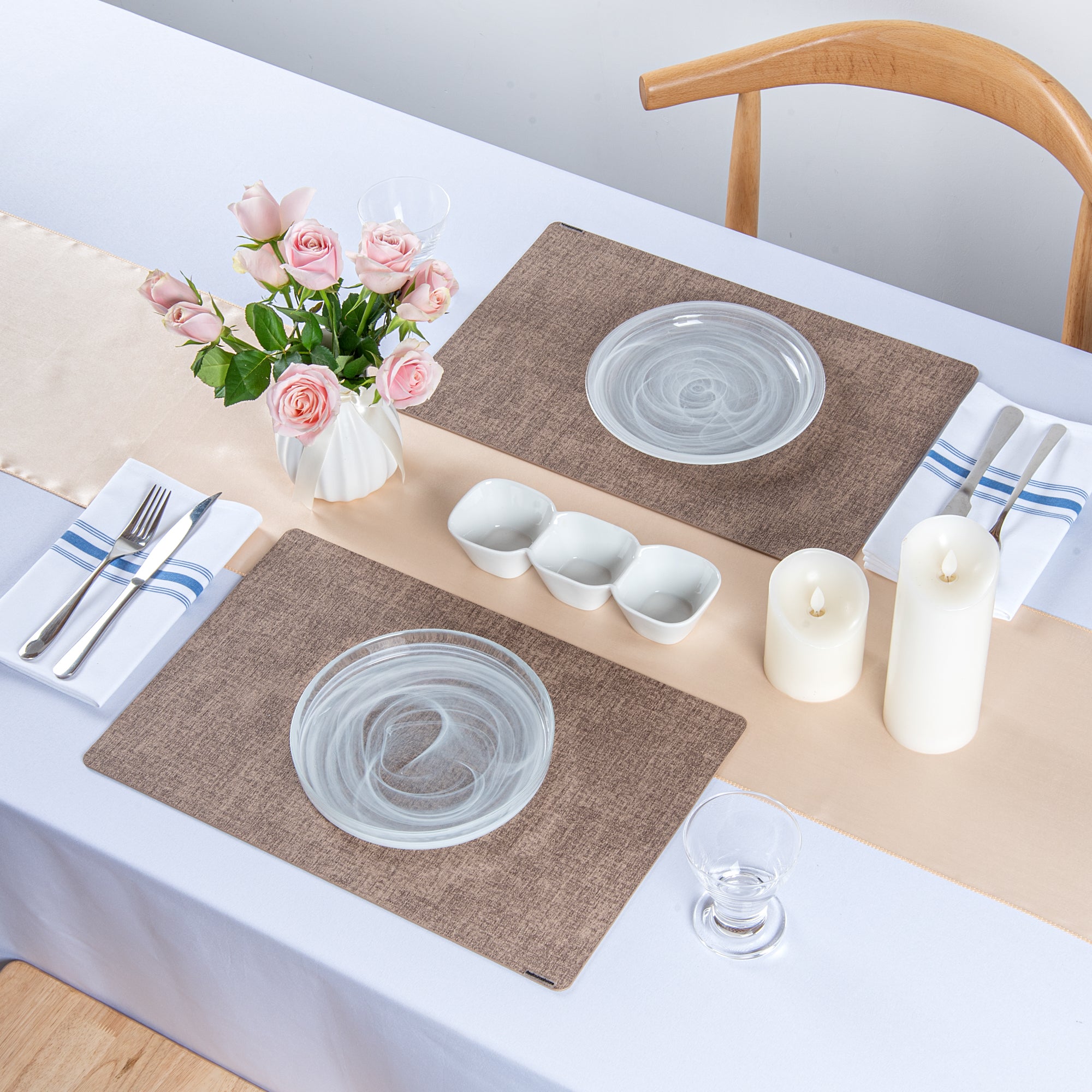 RECTANGLE BROWN VINYL LINEN-FEEL PLACEMAT