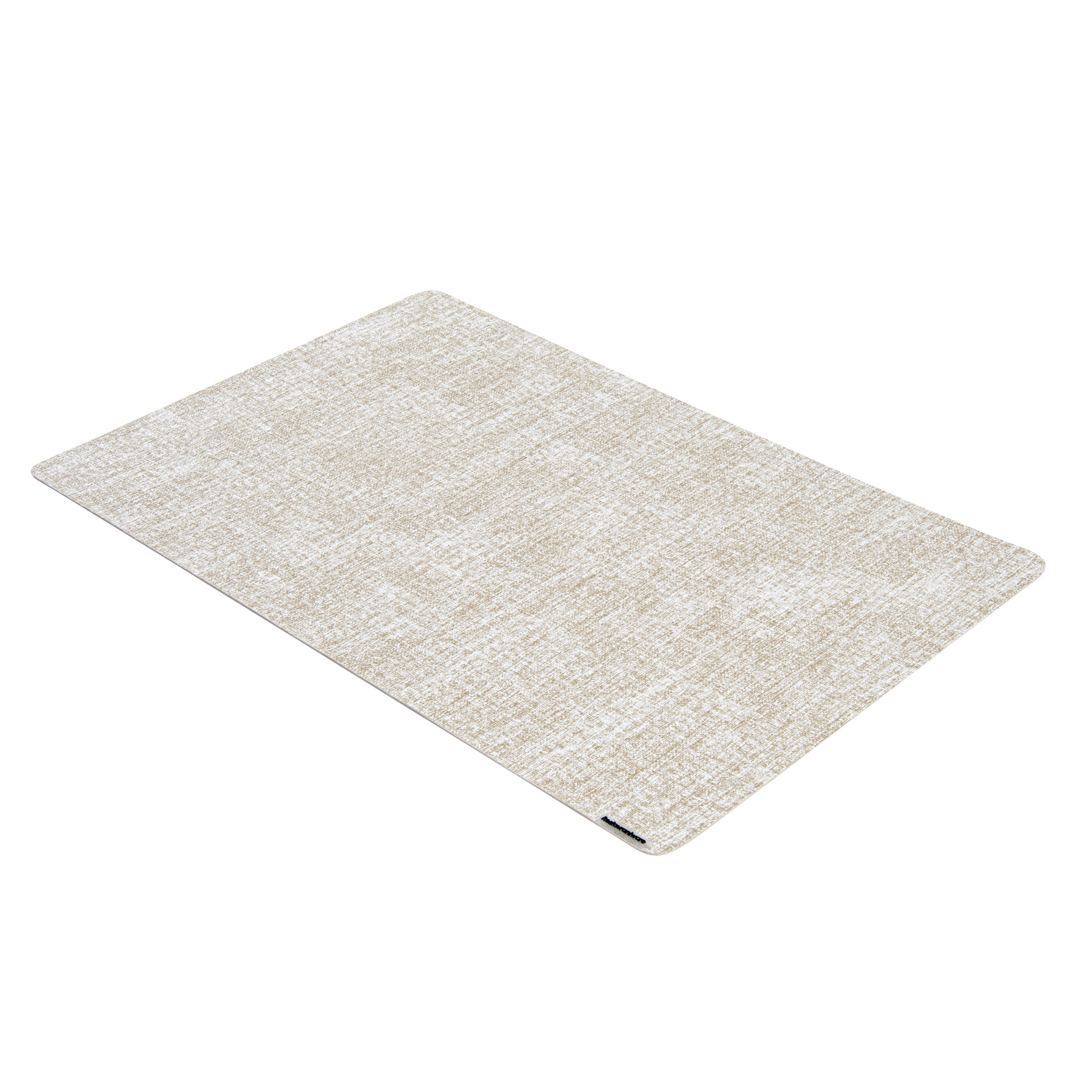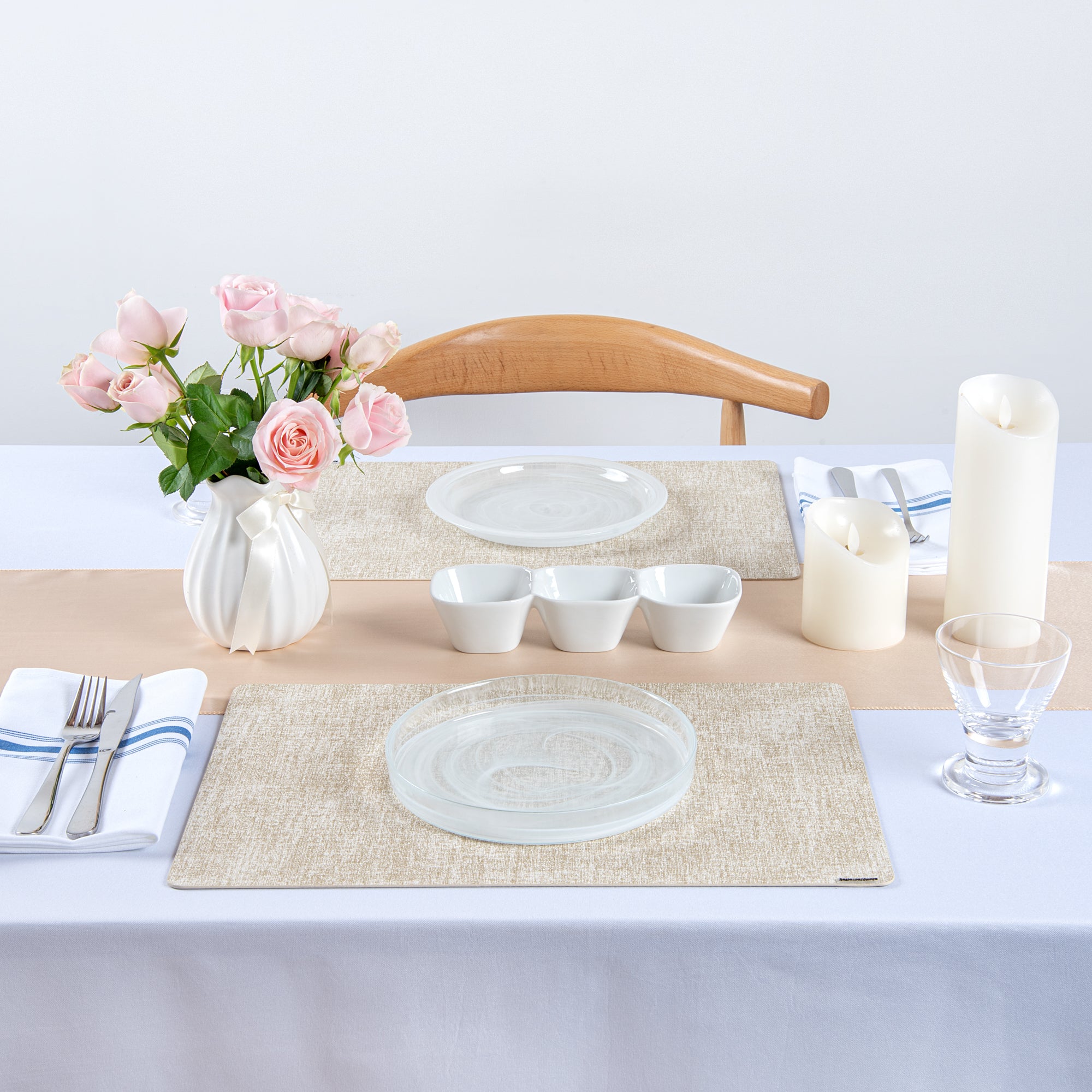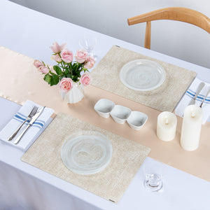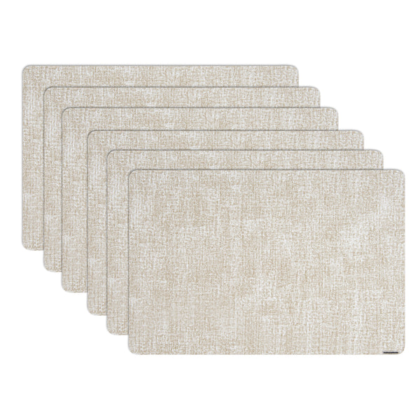Enhance your dining experience with sophisticated table settings. The Denim Mesh Linen-Feel Vinyl Placemat offers a luxurious linen-feel design that elevates tablescapes, making it ideal for formal dining events. Measuring 17.7 inches in length and 11.8 inches in width, this vinyl placemat provides ample space for any dinnerware arrangement. Its edge wrapping process is specifically crafted to prevent fraying, ensuring long-term use and maintaining its shape over time. Constructed from premium vinyl, this wipeable placemat allows for easy cleaning with just a damp cloth, enabling quick turnaround times between services. Designed to be both cold and hot food friendly, as well as greaseproof, these placemats meet the rigorous demands of busy foodservice settings. Choose these recyclable placemats to combine elegance with practicality in your restaurant. Each order includes 6 Denim Mesh Linen-Feel Vinyl Placemats.