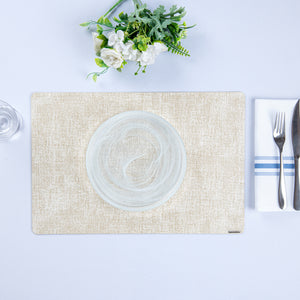RECTANGLE WHITE VINYL LINEN-FEEL PLACEMAT