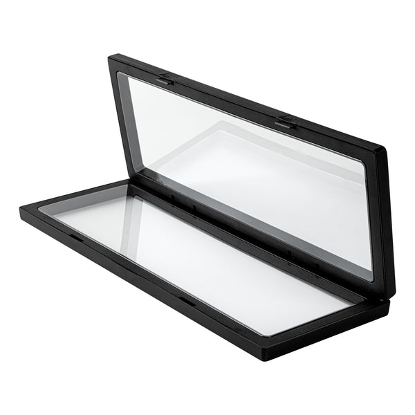 Showcase your collectibles with superior visibility and protection. The Display Tek Floating Memorabilia Display Box combines a 3D floating design that enhances visibility from all angles with a sleek, black aesthetic, making it perfect for both personal and professional displays. Crafted from durable ABS plastic, this memorabilia display box ensures long-lasting protection for your valuable keepsakes, making it an ideal choice for preserving precious items. Its push-to-open latch allows for secure yet easy access to your collections, providing convenience and peace of mind. With dimensions of 11.81 inches in length, 4.33 inches in width, and 0.79 inches in height, this coin display case is perfect for a variety of items, from coins to jewelry. Elevate the presentation of your prized possessions with this jewelry display frame that combines functionality with elegance. Each order includes 10 Display Tek Floating Memorabilia Display Boxes.