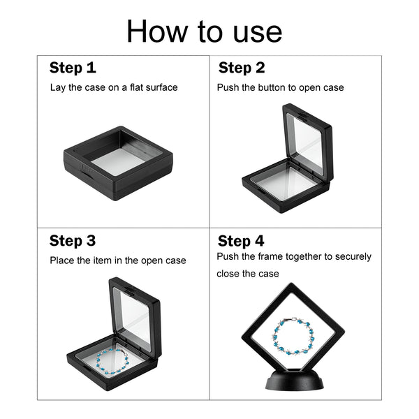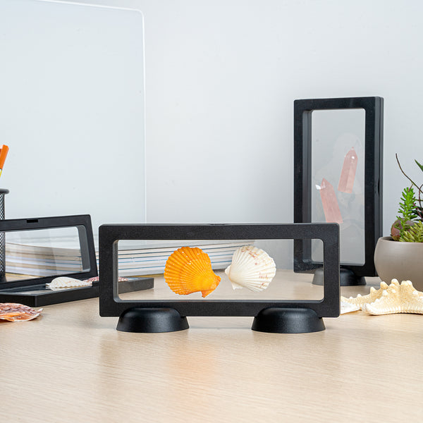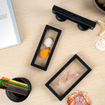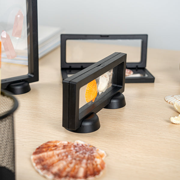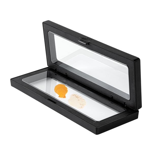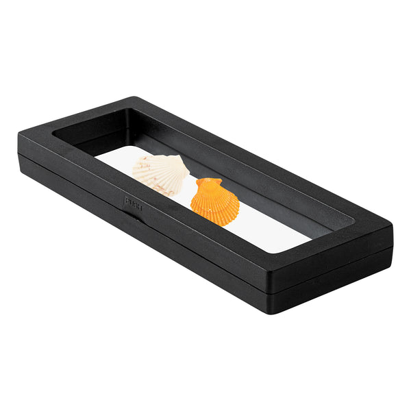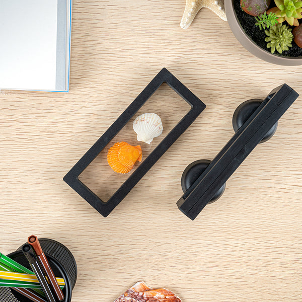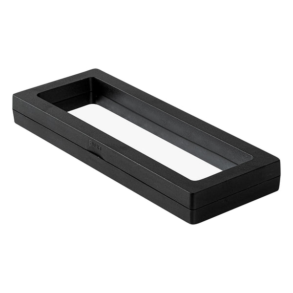 Introduce your valuables artistically with our Display Tek Rectangle Black Plastic 3D Floating Display Cases. These rectangle display cases are made of superior ABS plastic, ensuring durability. The eye-catching 3D floating design of these black display cases, along with the clear film, provides a mesmerizing view of your items. Plus, these plastic display cases shield your belongings from scratches, dust, and fingerprints. These display cases feature a push-to-open latch, facilitating secure yet effortless access to your items. Pair these floating display cases with our display stand (SKU: RWP1294B) for an elevated visual experience. Measuring 7 inches in length by 2.75 inches in width, these plastic display frames are smartly designed for the effective presentation of your possessions. Sold in a 10 count box. Display case stands are available and sold separately.