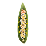 Create an exotic-inspired presentation for your dishes with our Dojo Green Fresh Bamboo Leaves. These vibrant bamboo leaves for sushi rolls add flair to your food presentation. Packaged in an innovative vacuum-sealed bag, these fresh bamboo leaves are able to expertly maintain their freshness until you're ready to use them. After opening a vacuum-sealed pack, we recommend refrigerating these food-safe bamboo leaves in water and using them within 2-3 days. Measuring around 11.75 inches in length by 3.5 inches in width, these fresh bamboo leaves are ideal for plating appetizers, tapas, entrees, and desserts. Shipped in a 100 count box. These bamboo leaves are not intended for consumption.