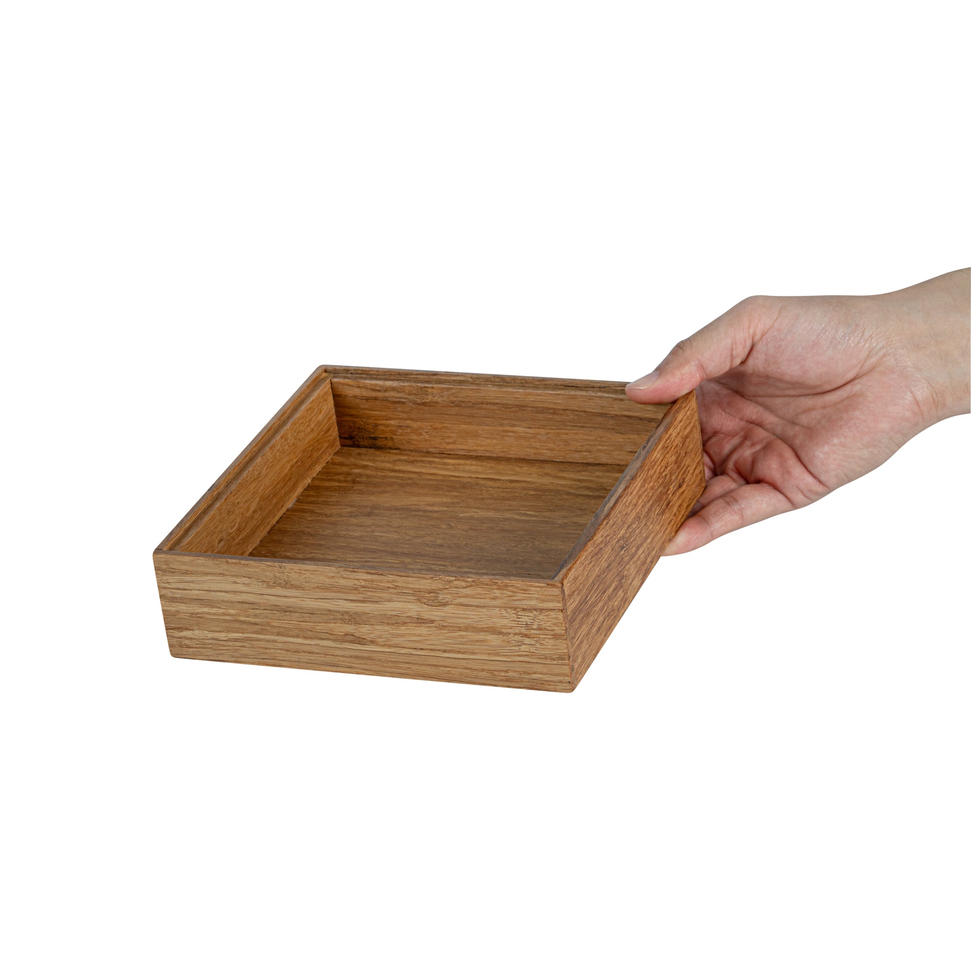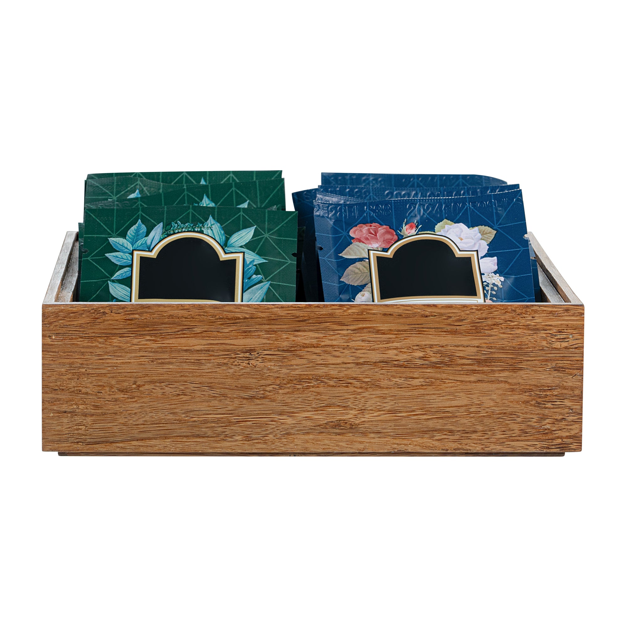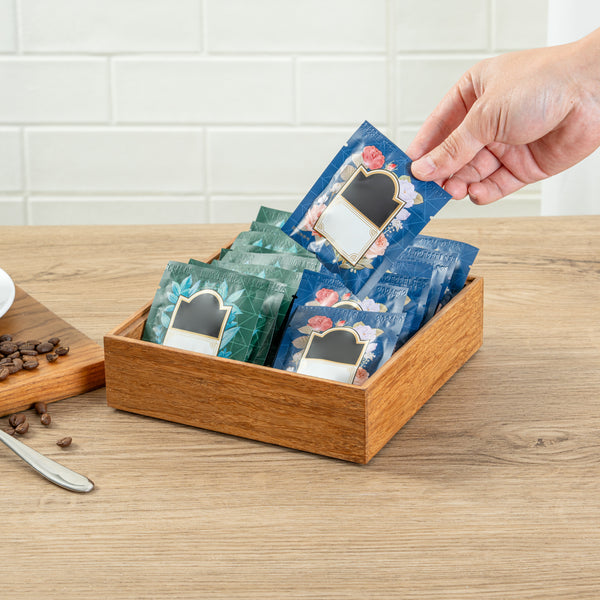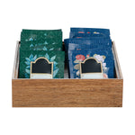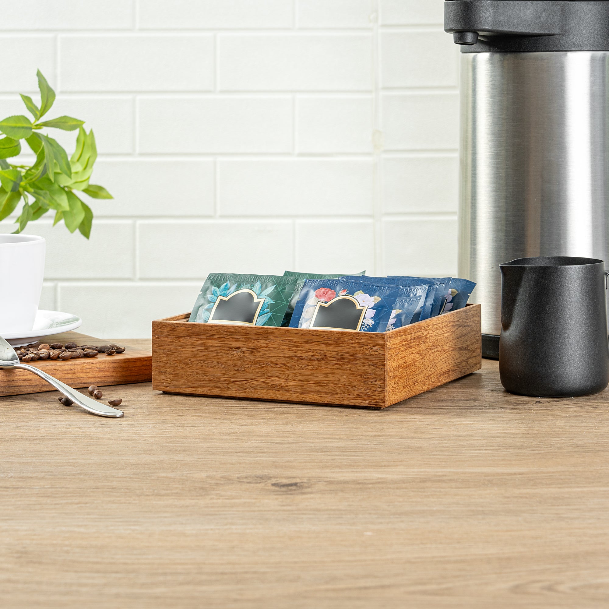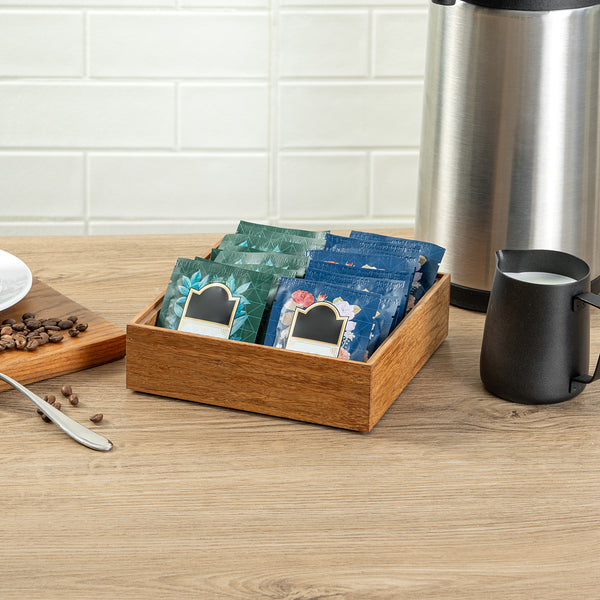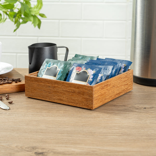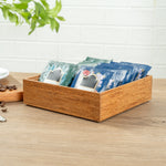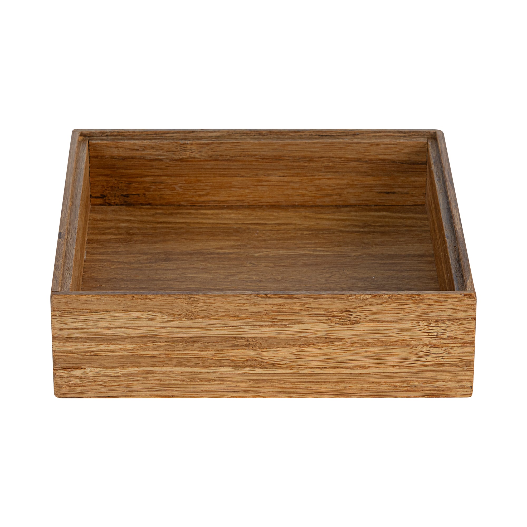 Keep ingredients organized with our Eco Display Natural Bamboo Condiment Rack Box. Great for storing your condiments, tea packets, and cocktail napkins, this wooden condiment holder expertly contains items to prevent clutter on your countertop. Crafted from eco-friendly bamboo, this cocktail napkin box is chip-resistant and shatterproof to keep its high-quality and elegant appearance. With its natural wood grain pattern, this stylish bamboo storage box beautifully complements the environment at your hotel, restaurant, or catered event. Designed with a smooth surface, this elegant bamboo box can be easily cleaned with a damp cloth without having to submerge it in water. Measuring 7 inches long and 2 inches tall, this rustic wood napkin holder conveniently fits into various spaces in your cabinet, drawer, or shelf. Combine this bamboo organizer box with our coordinating tiered rack frame to create an efficient and stylish condiment holder rack. Sold in a 1 count box. Rack (SKU: RWT0602) is available and sold separately.
