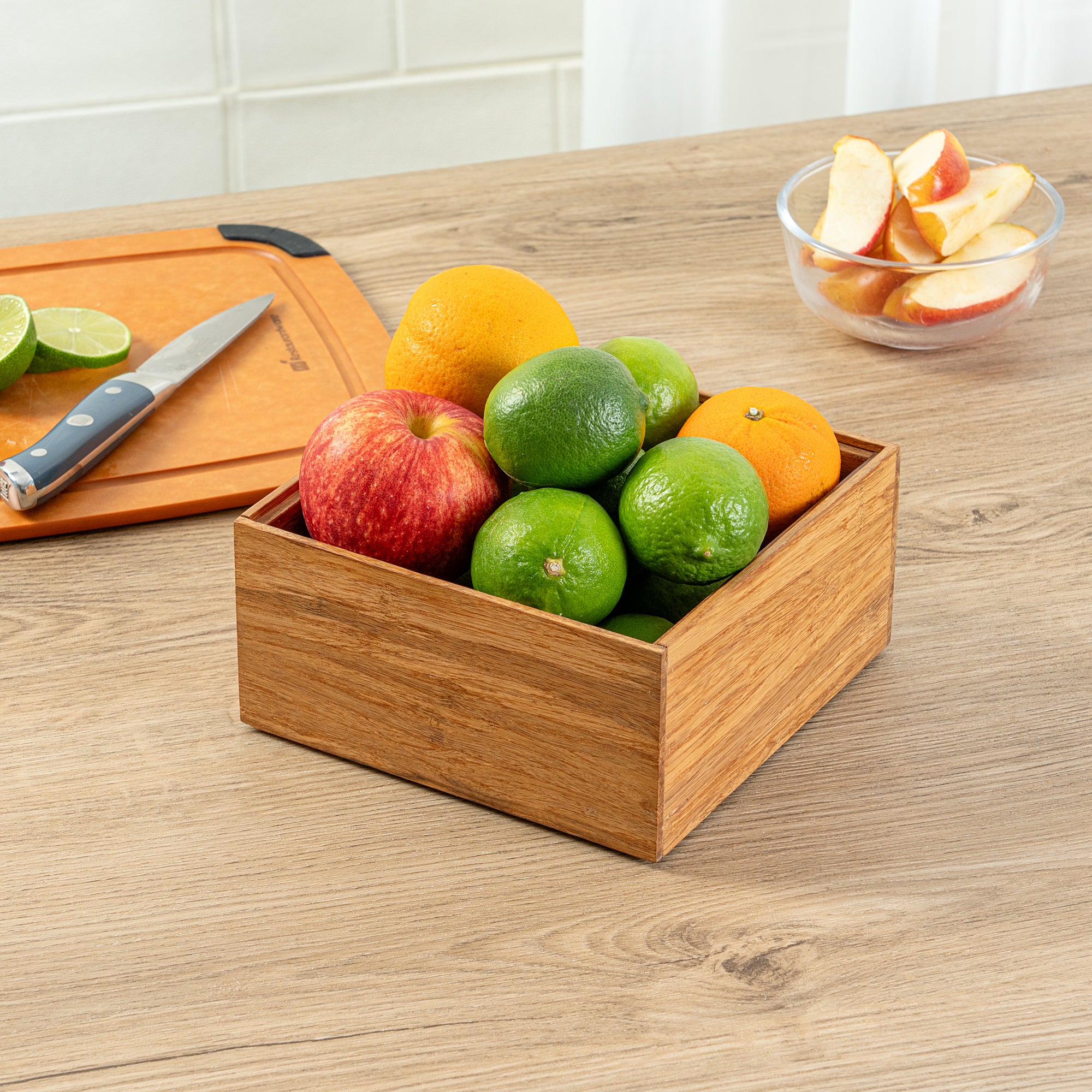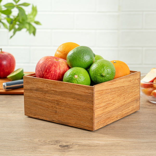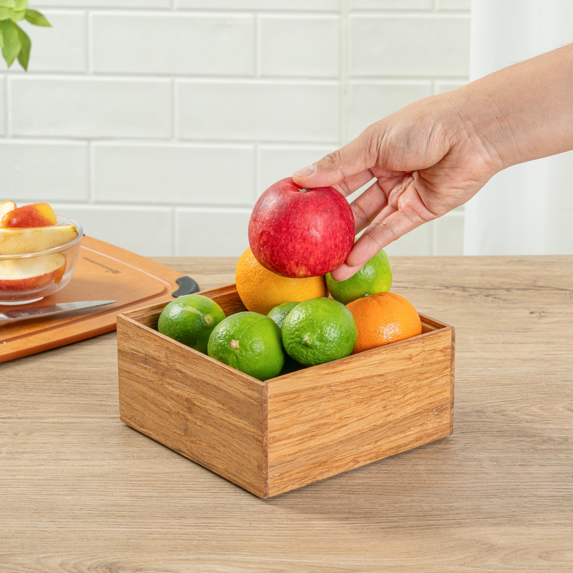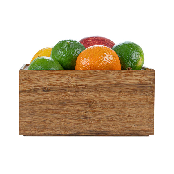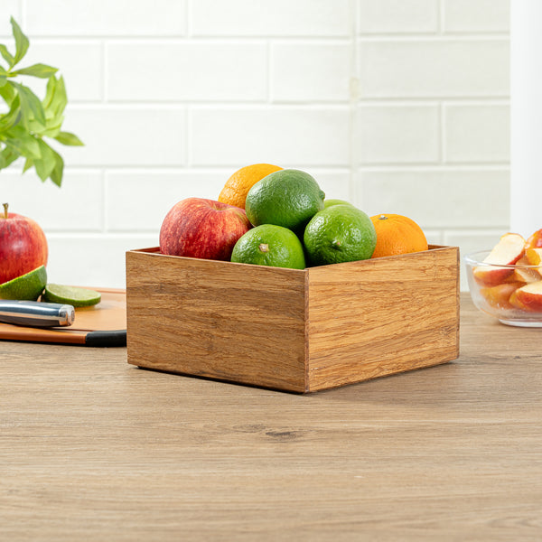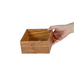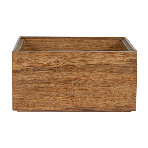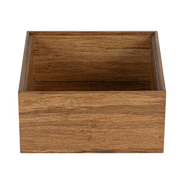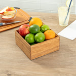 Keep your counters withoutclutter with our Eco Display Natural Bamboo Condiment Rack Deep Box. The high walls and deep design of this square wooden box securely hold all types of straws, stirrers, cocktail napkins, or condiments. Made from sturdy and sustainable bamboo, this wooden condiment holder is shatterproof and chip-resistant to preserve its premium appearance. With its natural wood grain finish, this bamboo organizer box beautifully displays your condiments with its rustic charm. The smooth surface of this cocktail napkin box can be quickly wiped down to streamline the cleaning process at your hotel, restaurant, or catered event. Measuring 6.5 inches in length by 3.25 inches in height, this small bamboo box fits inside many types of cabinets and shelves. This bamboo drawer organizer matches perfectly with our coordinating rack frames to create an elegant condiment holder. Sold in a 1 count box. Rack (SKU: RWT0603) is available and sold separately.