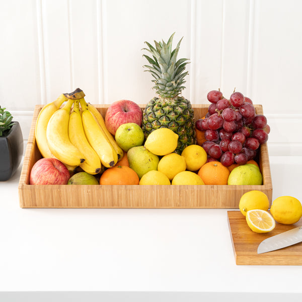 Display your products in our Eco Display Rectangle Natural Bamboo Display Bin. With an open-top design, this retail display provides your customers with a full view of treats. Constructed from high-quality bamboo, this food bin offers you an eco-friendly way to display grab-and-go snacks at your foodservice establishment. Featuring an all-natural bamboo finish, this display bin effortlessly complements the decor of your business while adding a charming touch to self-serve stations. This open-top display provides your patrons with easy access to your baked goods. The outer measurements of this retail store display bin are 20 inches in length by 12 inches in width by 7 inches in height. This wooden display's inner measurements are 18.89 inches in length by 10 inches in width by 6.8 inches in height. Sold in a 1 count box.