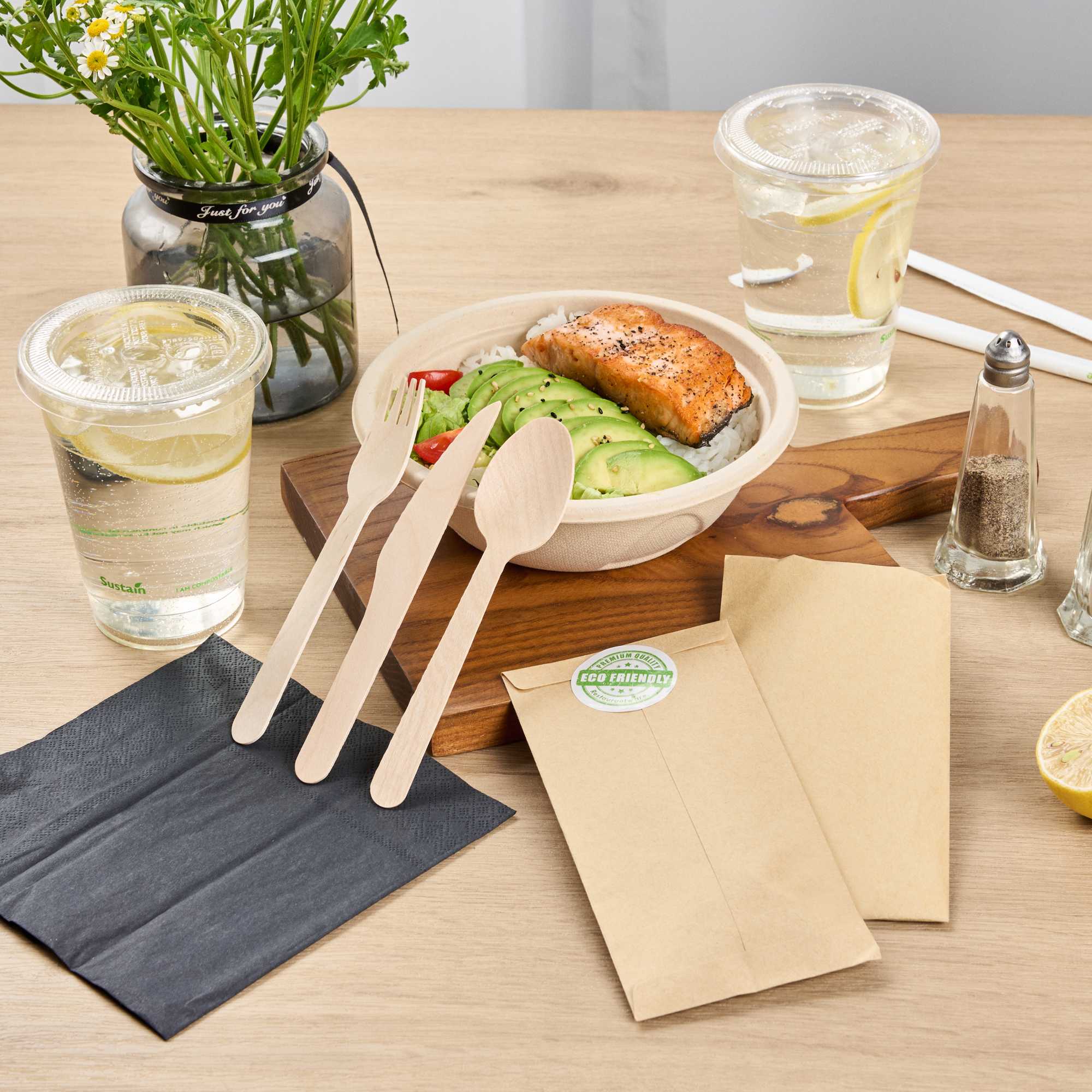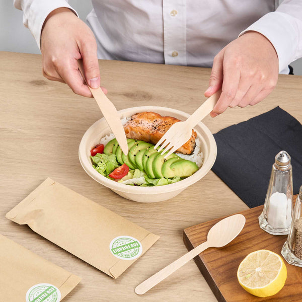 Enhance your dining experience with sustainable tools. Our Eco Luxe 7" Wooden Utensils, Compostable, are crafted entirely from natural wood, providing a versatile and reliable solution for foodservice professionals seeking wooden utensils. With a compostable and biodegradable design, these utensils ensure eco-friendly disposal, allowing you to maintain a sustainable operation without compromising on quality. Perfect for both hot and cold dishes, this disposable wood flatware suits versatile menus, accommodating everything from chilled salads to hearty stews. Additionally, their freezer-safe design supports advanced meal prep and storage, ensuring your kitchen's efficiency is never hindered. Embrace a greener approach to dining and impress your guests with this compostable utensil set. Each order includes 500 Eco Luxe Wooden Utensils.