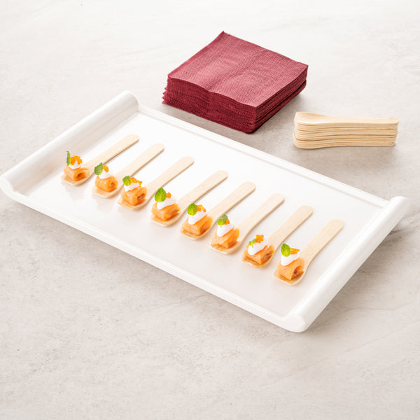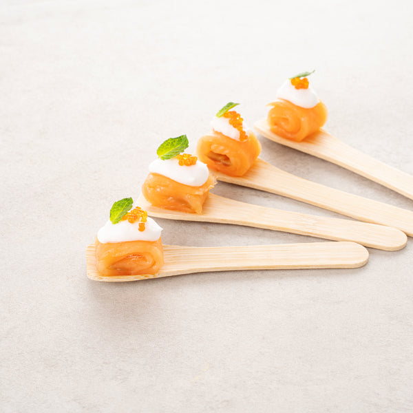 Make your appetizer or dessert presentation mess-free and portable using our Rounded Square Natural Bamboo Tasting Spoons. These ice cream sample spoons are made of high-quality bamboo and will not snap easily. Made from premium bamboo, these gelato spoons are odorless and don't alter the taste or smell of foods. The bamboo tasting spoons are suitable for both hot and cold foods, making them perfect to enjoy all types of samples. With a flat design, these gelato spoons are comfortable to hold while tasting. These disposable tasting spoons come with an indented rounded square shape for easy scooping. These sample spoons are conveniently disposable, making the cleaning process fast and simple. Measuring 3.5 inches in length, these ice cream sample spoons fit inside most dessert takeaway boxes. Shipped in a 100 count box.