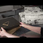 KRAFT AND BLACK PAPER CORRUGATED PIZZA BOX - REPURPOSE FOR PLATES