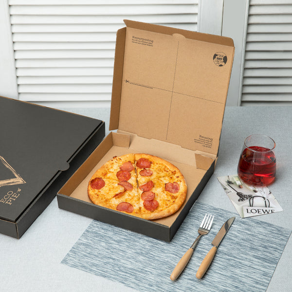 Eco Pie Kraft and Black Paper Corrugated Pizza Box - Repurpose for Plates - 16 1/4
