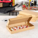 Protect your pizzas and flatbreads with eco-friendly, durable packaging. The Eco Pie Tab-Lock Rectangular Pizza Box features sturdy corrugated cardboard construction that prevents damage during transit, ensuring each pizza arrives in perfect condition. Its E-flute design maintains the box’s shape and protects contents, making it a dependable rectangular pizza box for takeout and delivery. The 14 inches by 7 inches by 1.5 inches dimensions provide ample space for flatbreads, enhancing your menu versatility. With a kraft paper design, this kraft pizza box offers a rustic appeal that resonates with eco-conscious customers. The tab-lock slot ensures secure delivery, making it the ideal pizza delivery box for busy pizzerias and restaurants. Stackable for efficient storage, these boxes are perfect for maximizing space in bustling kitchens. Enhance your foodservice packaging with this reliable solution. Each order includes 50 Eco Pie Tab-Lock Rectangular Pizza Boxes.