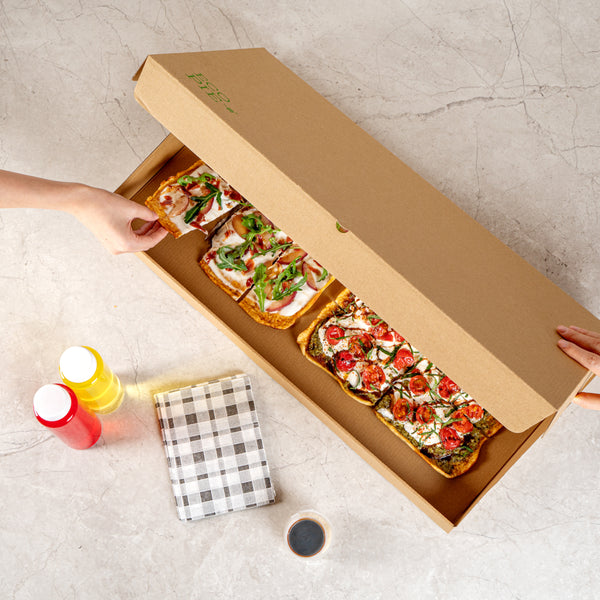 - Corrugated cardboard is sturdy to keep flatbreads from getting damaged