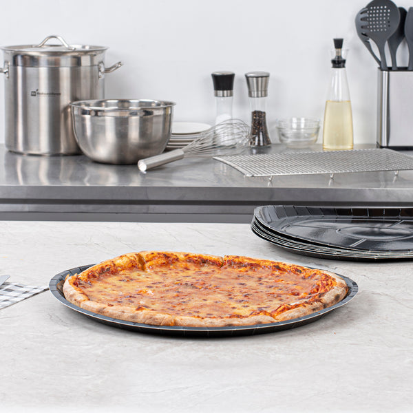 ROUND BLACK PAPERBOARD PIZZA TRAY - OVEN-SAFE