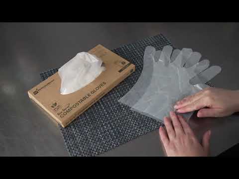 Offer your employees safety and comfort when preparing food orders using our Eco Serve Clear Plastic Large Compostable Gloves. Made from plant-based plastic that is derived from cornstarch, these disposable gloves are commercially compostable and provide your staff members with a nature-friendly way to dispose of used gloves. These large gloves are powder-free to avoid leaving uncomfortable residue on hands after removing them. Designed to fit large-sized hands, these commercially compostable gloves perfectly fit the hands of most of your employees and offer full mobility when handling ingredients. These disposable gloves have a clear finish that complements the rest of your establishment's protective gear. Each large glove measures 11.5 inches in length and 10.25 inches in width. Sold in a 100 count box. Keep gloves away from excessive heat to maintain their appearance.
