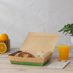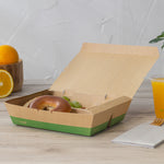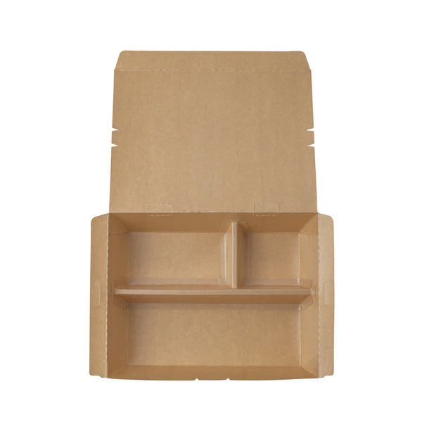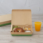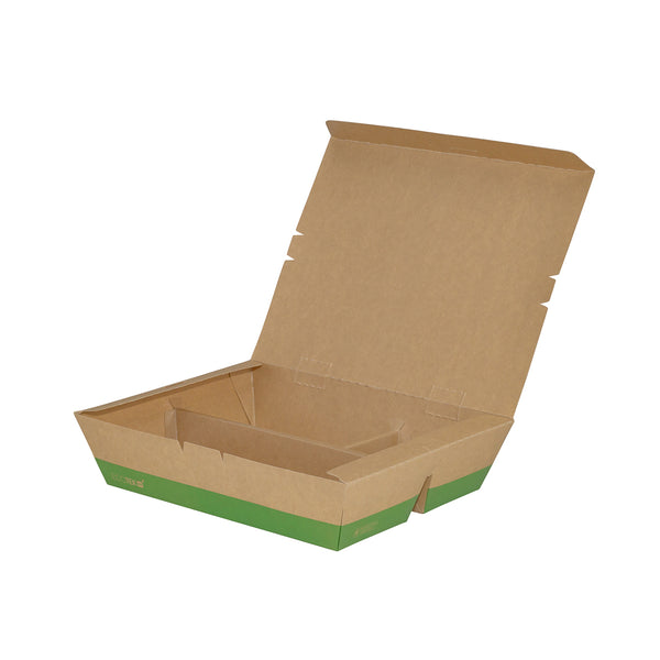 51 OZ KRAFT AND GREEN PAPER BENTO BOX - 3-COMPARTMENT, COMPOSTABLE