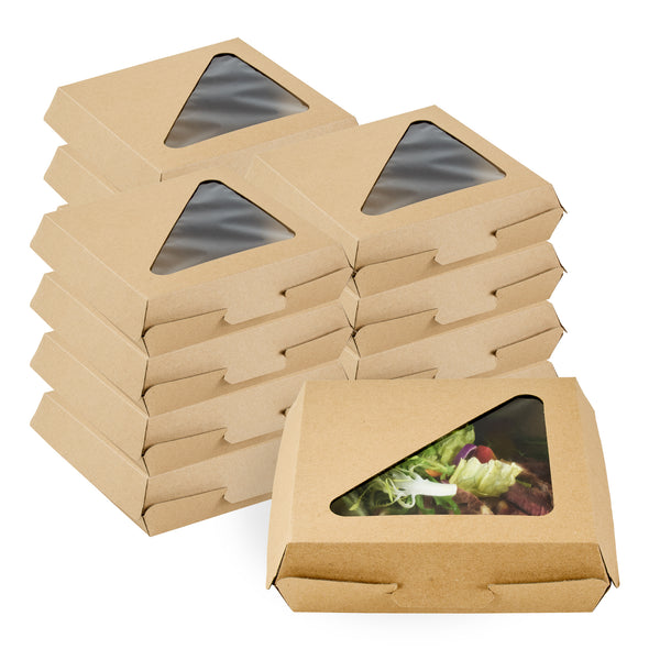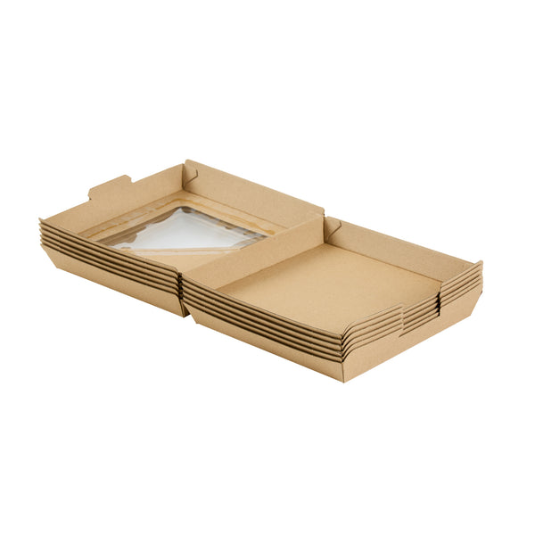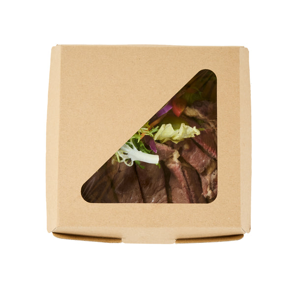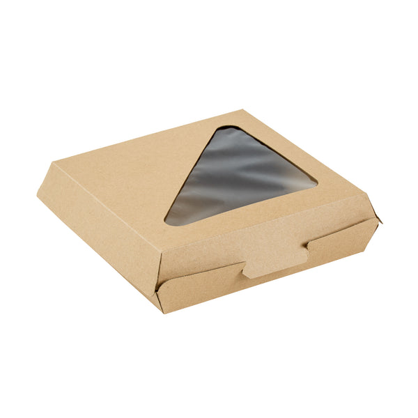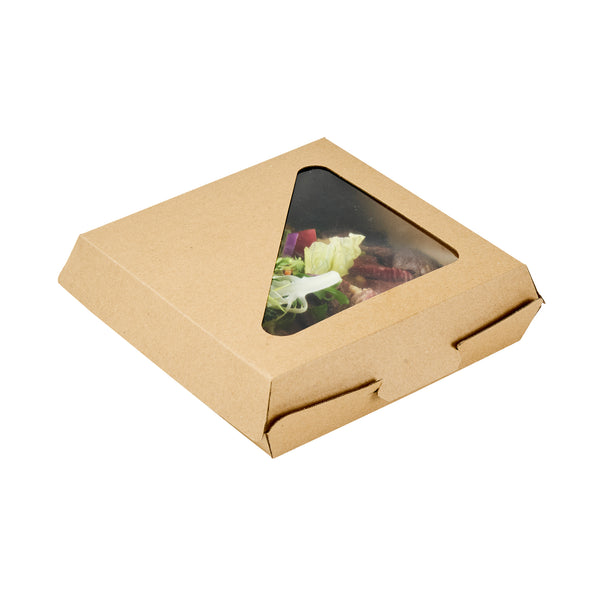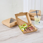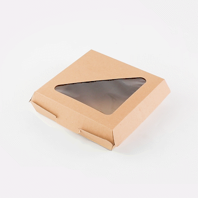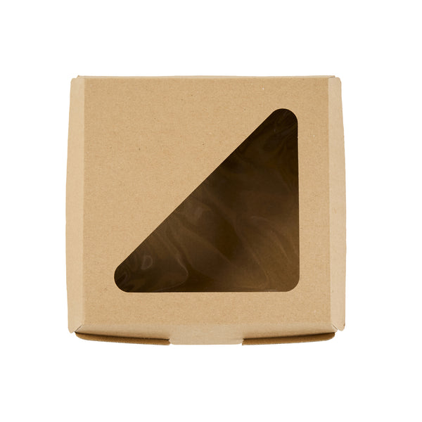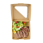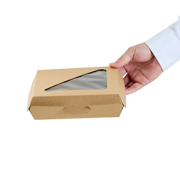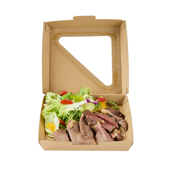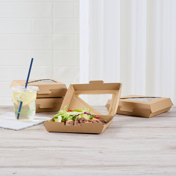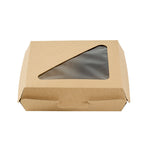 SQUARE KRAFT PAPER CORRUGATED CLAMSHELL CONTAINER - WITH PLA WINDOW