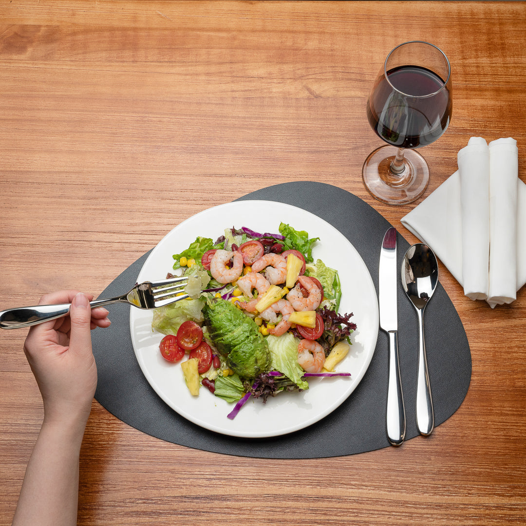 EGG-SHAPED BLACK VINYL PLACEMAT - EMBOSSED