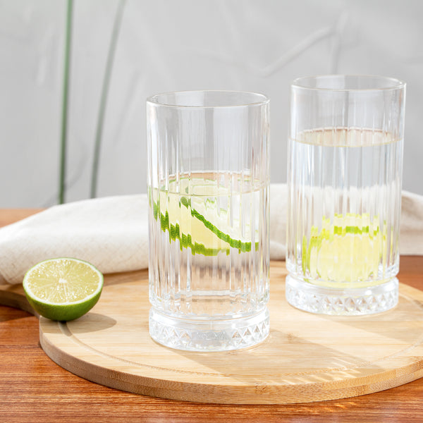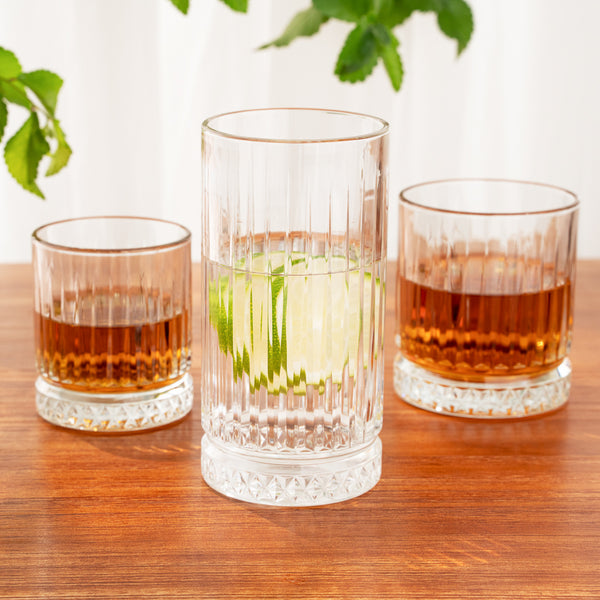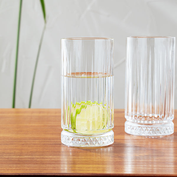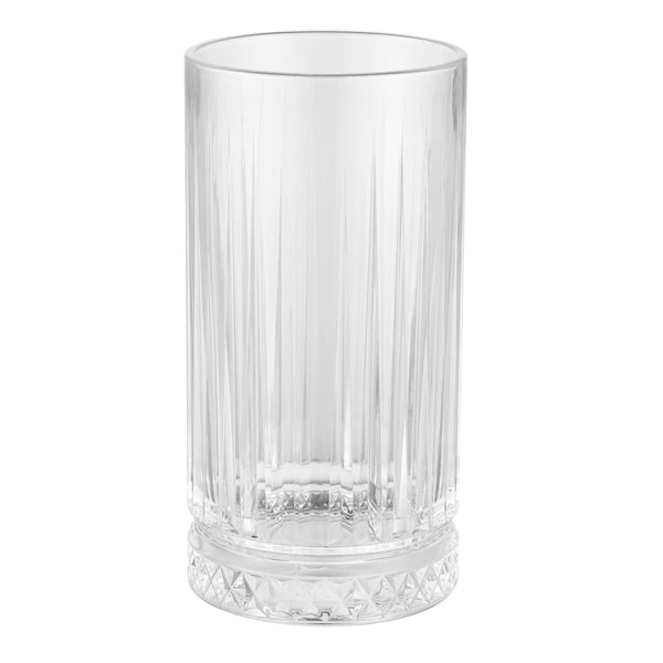 Elevate your beverage presentations using our Elysia 15-Ounce Drinking Glasses. Featuring a unique cut glass design, these drinking glasses give your beverages a vintage look, making them perfect for upscale bars or formal events. These lead-free drinking glasses boast exceptional clarity to showcase the carbonation of sodas or lively colors of juices. With a thick base, these water glasses are designed to stay stable on trays and countertops to stop them from tipping over. Each machine-pressed glass is manufactured with superior precision and built to withstand commercial dishwasher use. Measuring 3 inches in diameter by 6 inches in height, these 15-ounce glasses are excellent for serving iced tea, water, and beer. Shipped in a 6 count box.