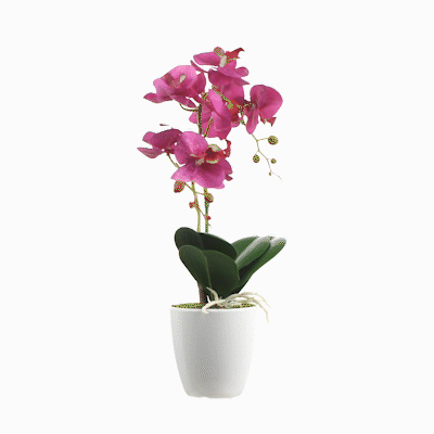 - Realistic magenta orchids have long stems and buds for an authentic look