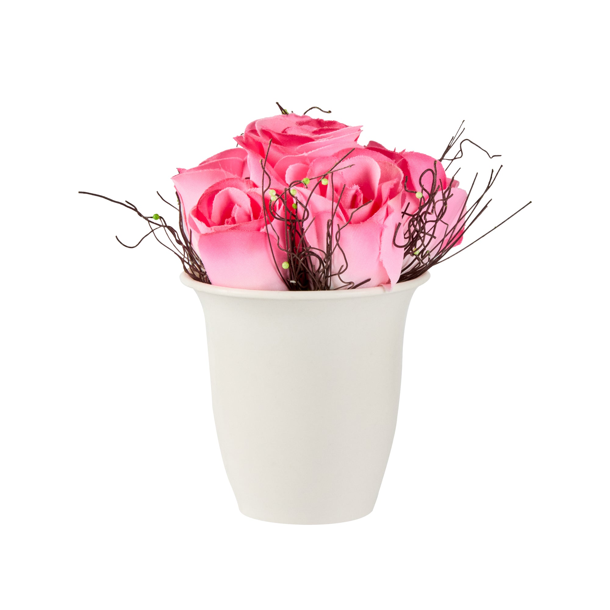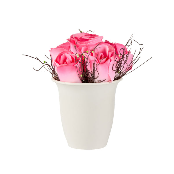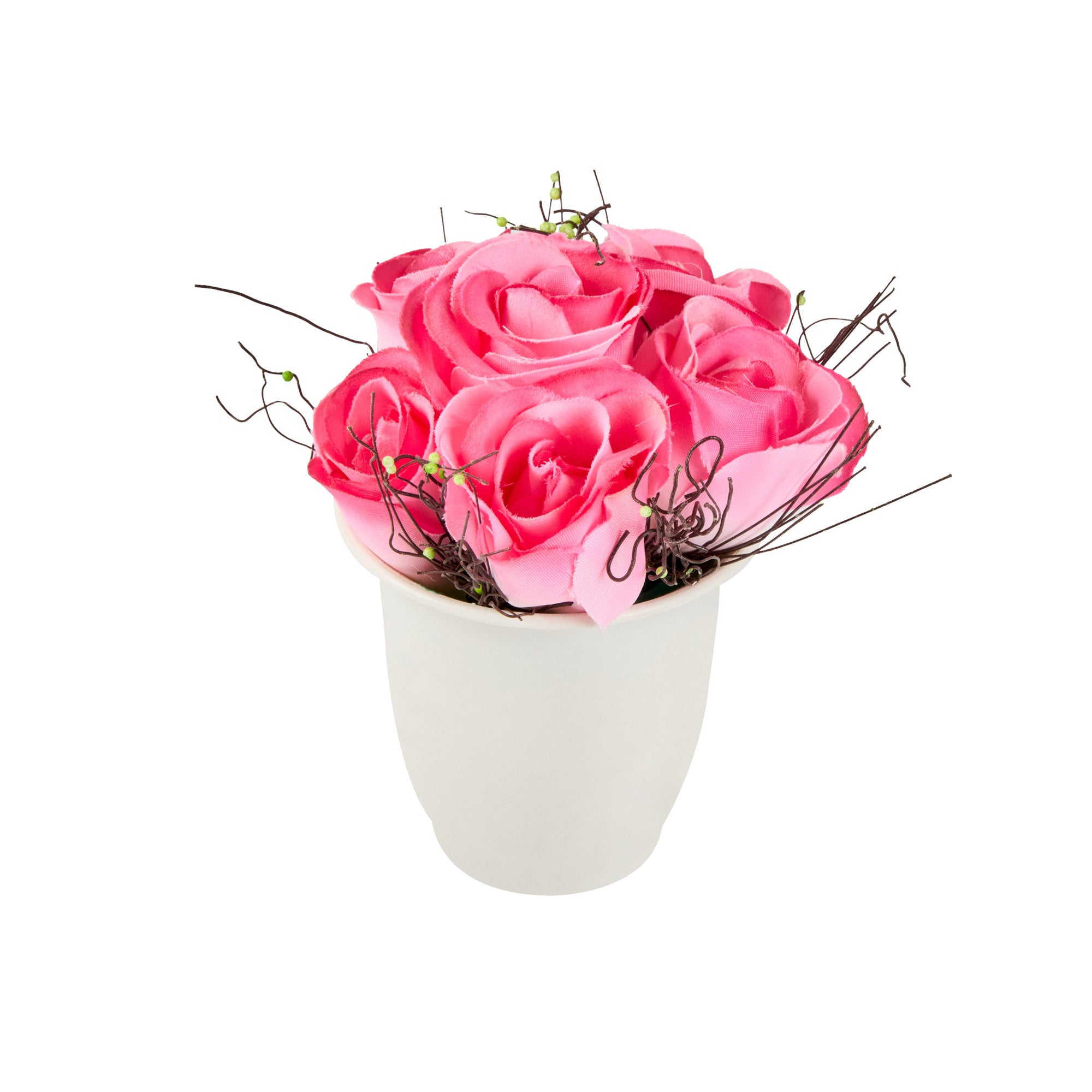 PINK PLASTIC ROSES IN PLASTIC POT - 6 BLOOMS