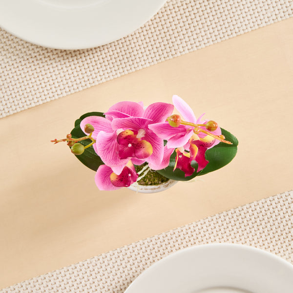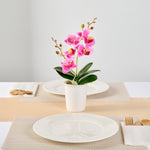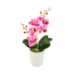 ROUND PURPLE PLASTIC ORCHID IN PORCELAIN POT - 5 BLOOMS