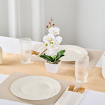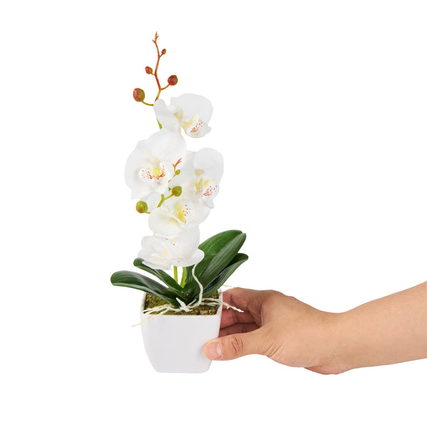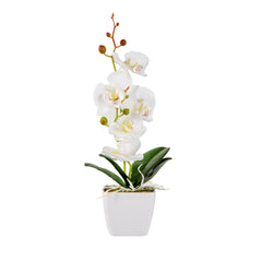 - Realistic white orchids have long stems and buds for an authentic look