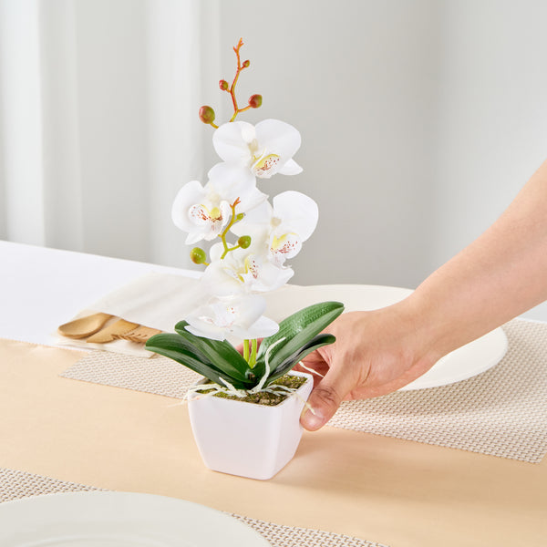WHITE PLASTIC ORCHID IN PLASTIC POT - 5 BLOOMS